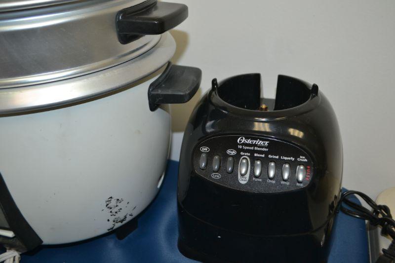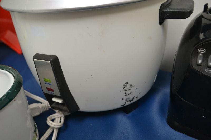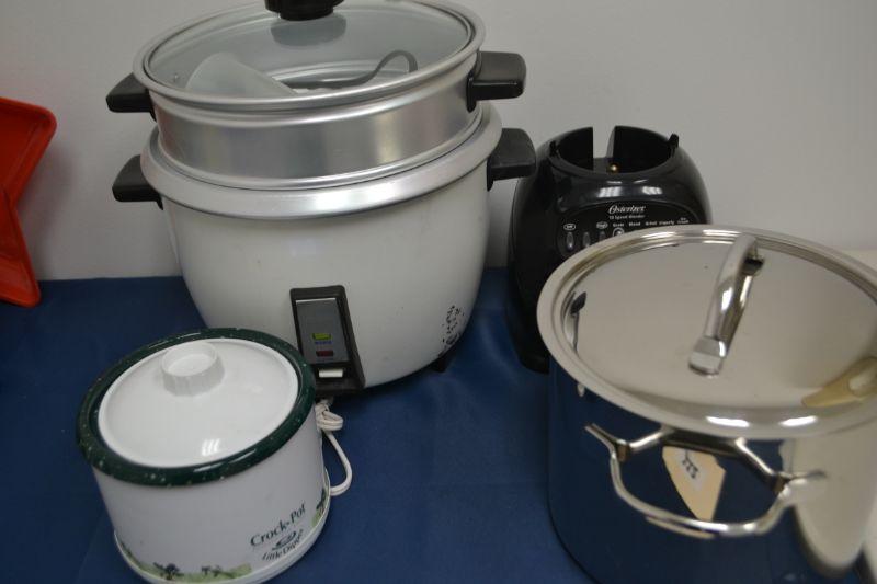 LOT 112 RICE COOKER AND KITCHEN GEAR. (BLENDER BASE ONLY)