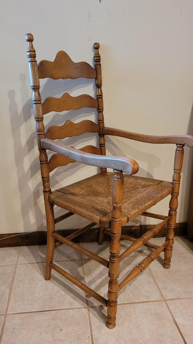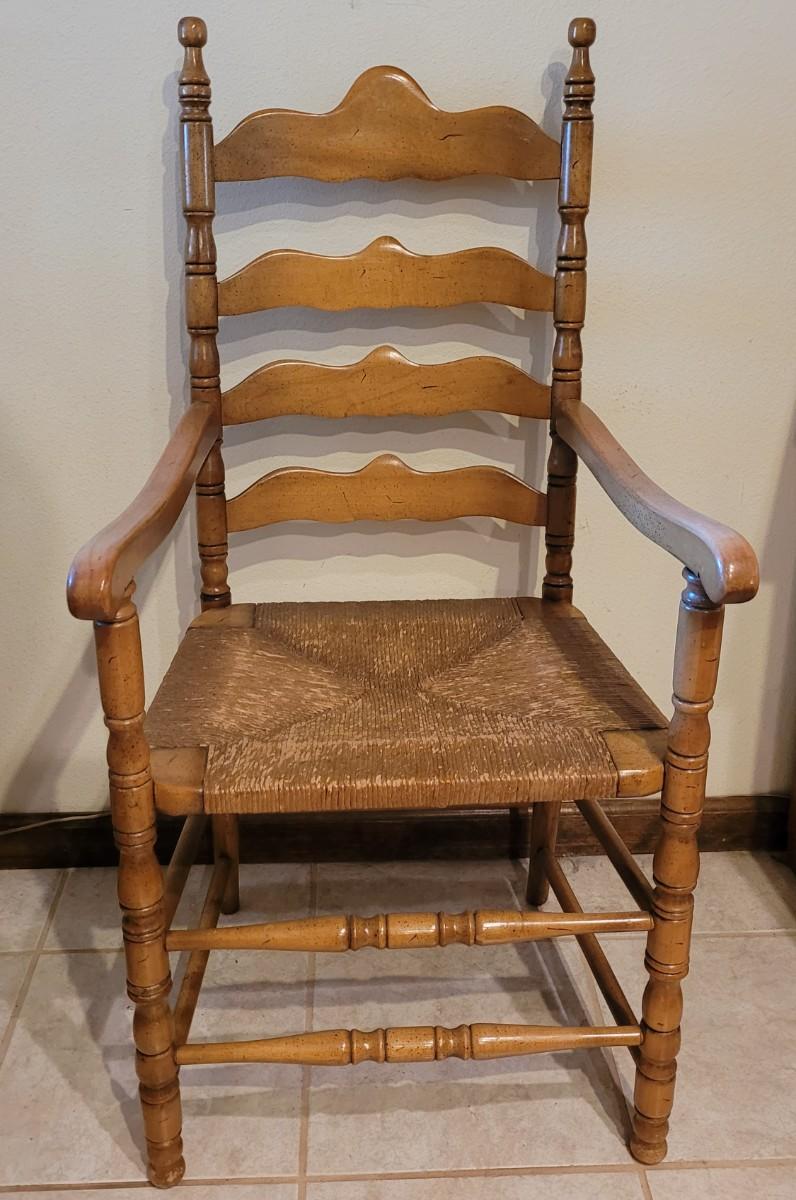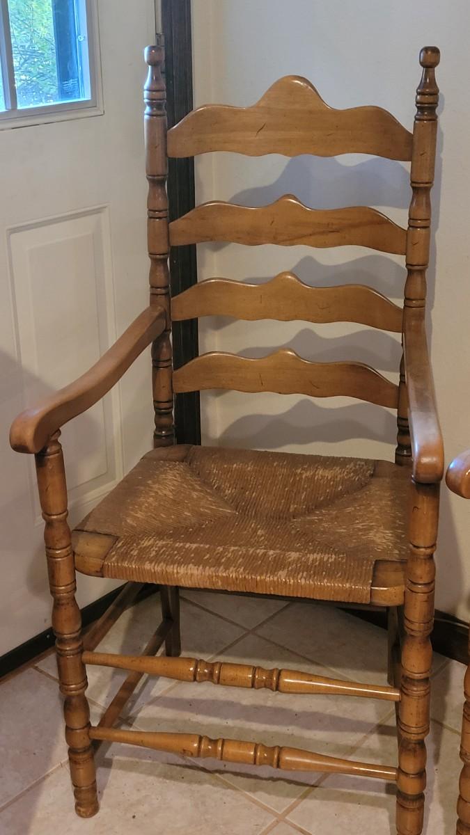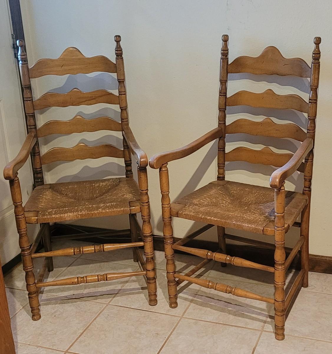 Lot 112: Antique Pair of Ladder Back Chair with Rush Seat