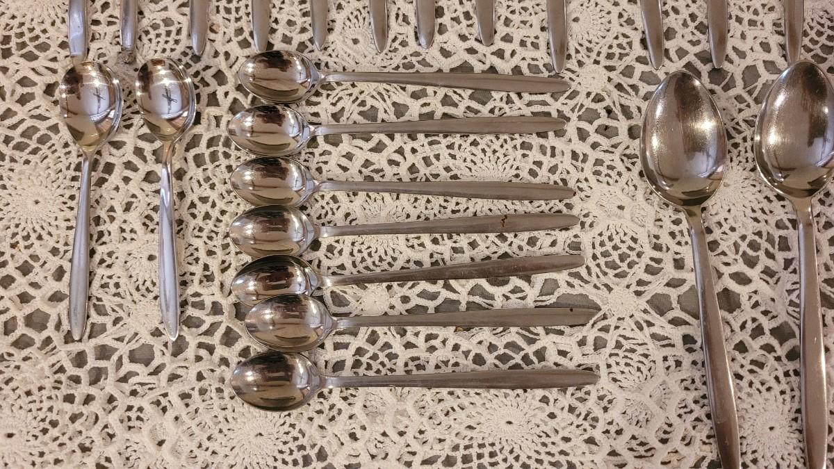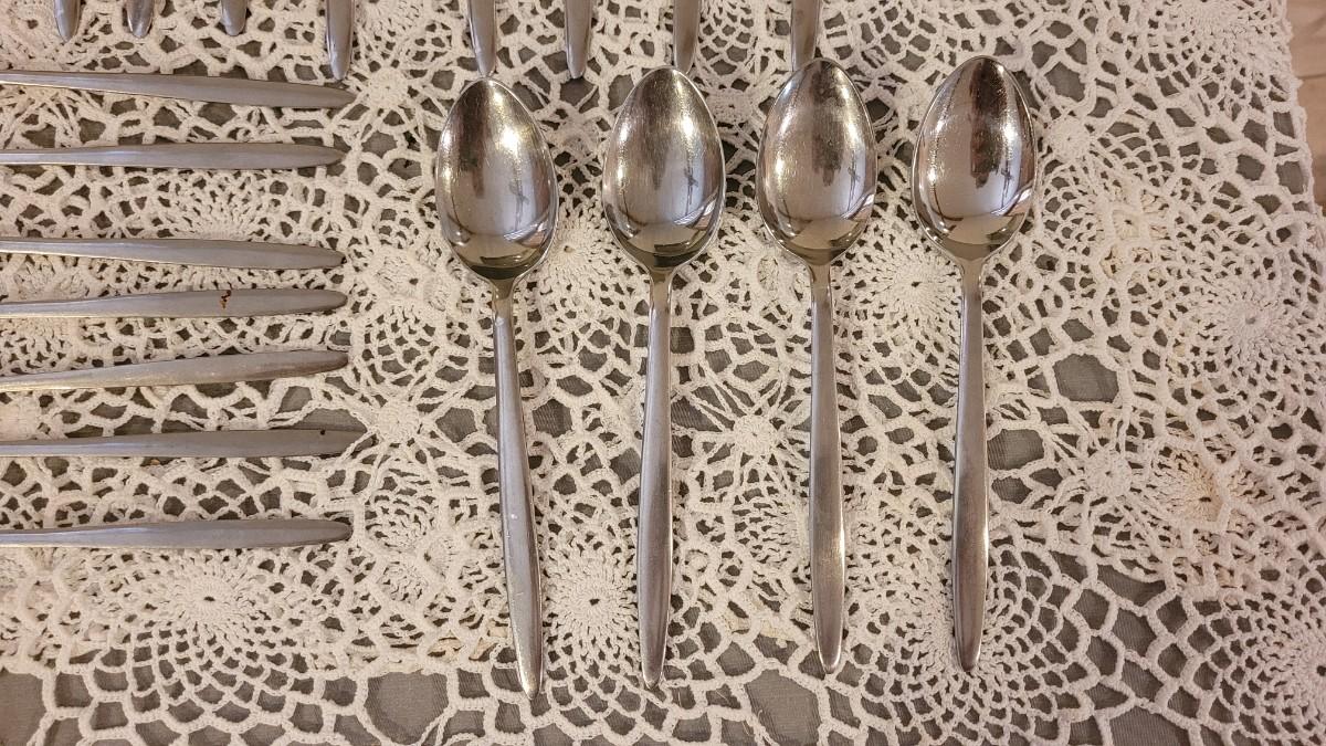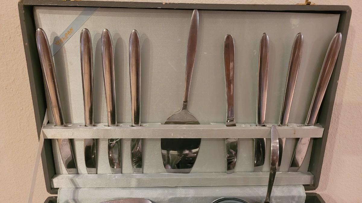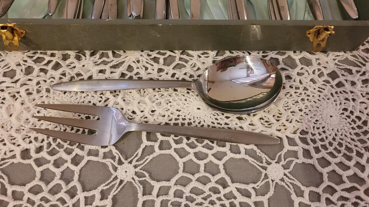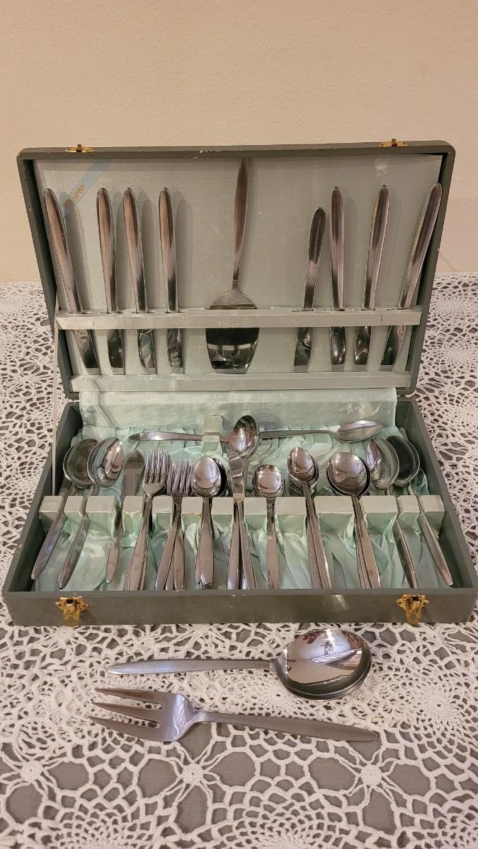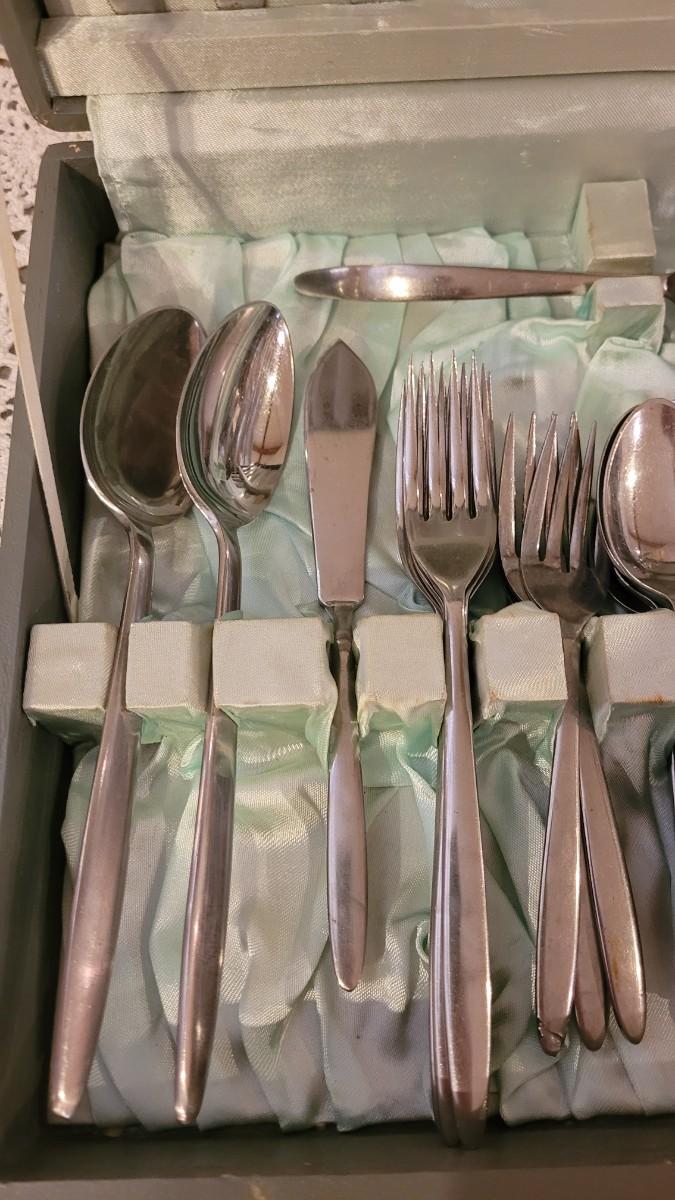 Lot 107: Mid Century Modern Sohnaco Stainless Flatware Set and storage box