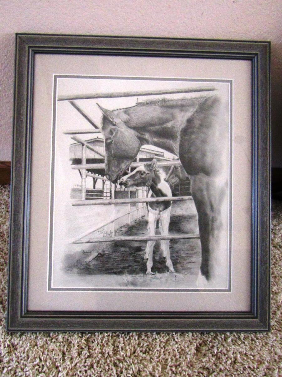 SIGNED AND NUMBERED MARE AND FOWL SKETCH 17" X 20"
