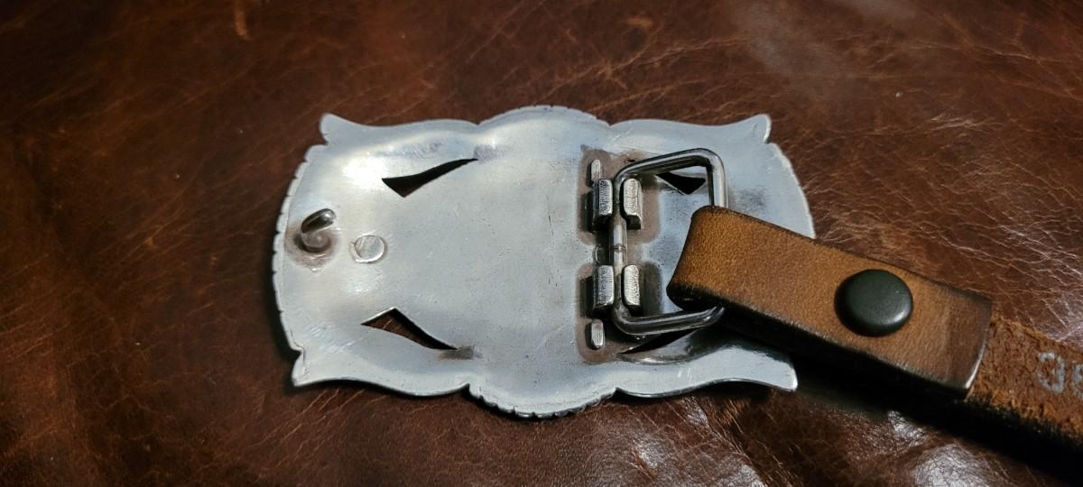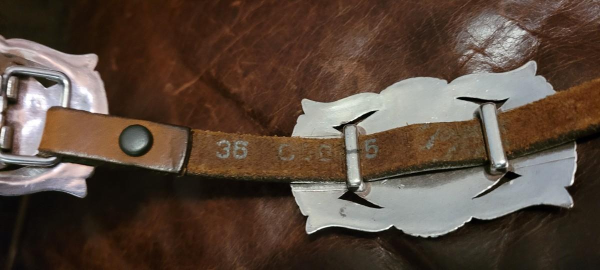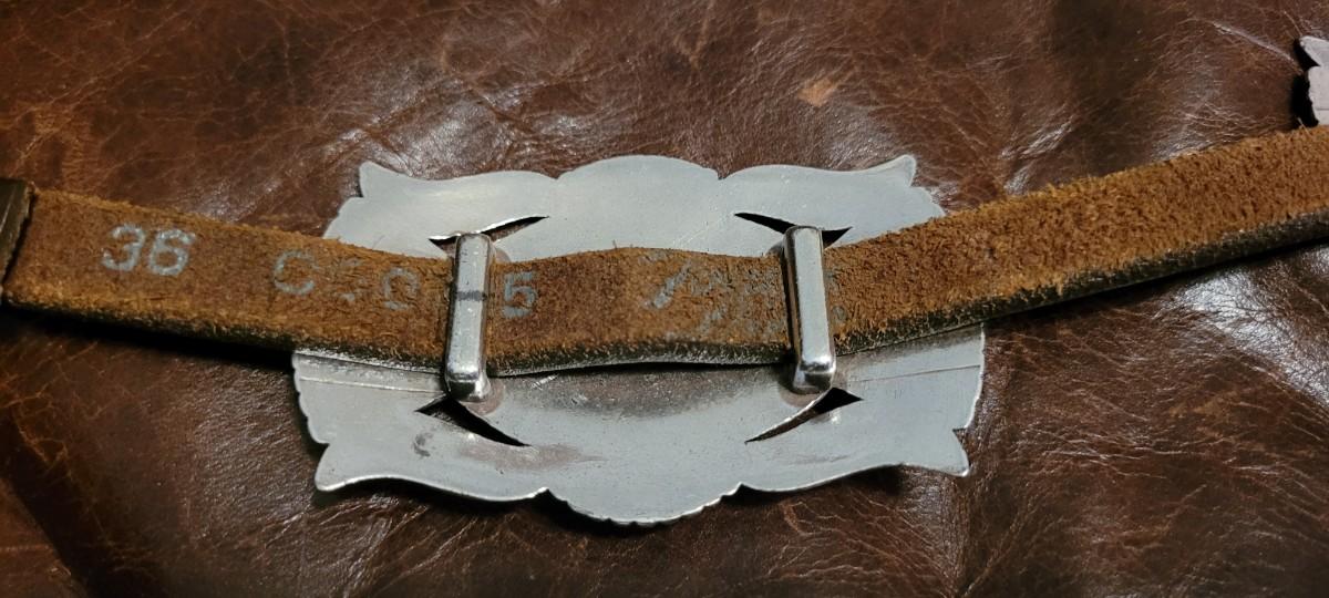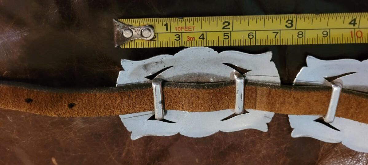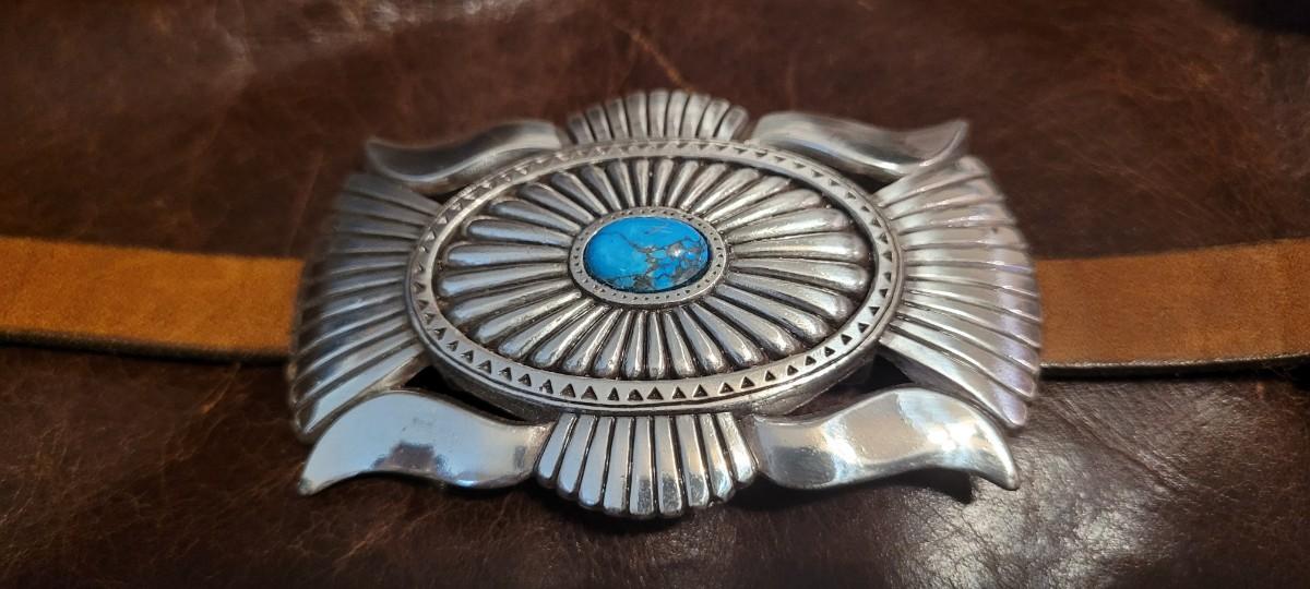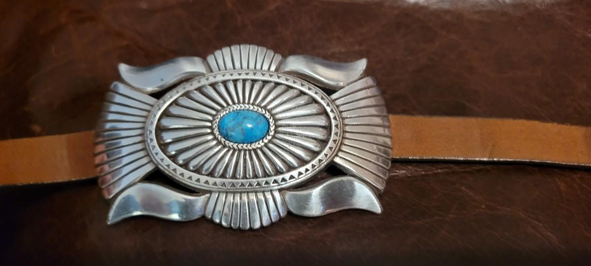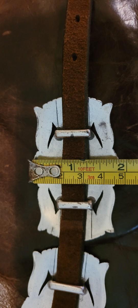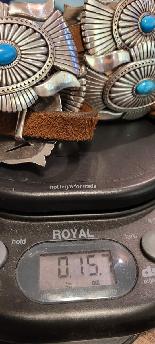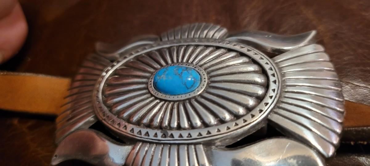 Lot 112: Vintage Handmade Sterling Silver Native American Concho Set (9 total) w/ Turqoiuse Stones and leather belt