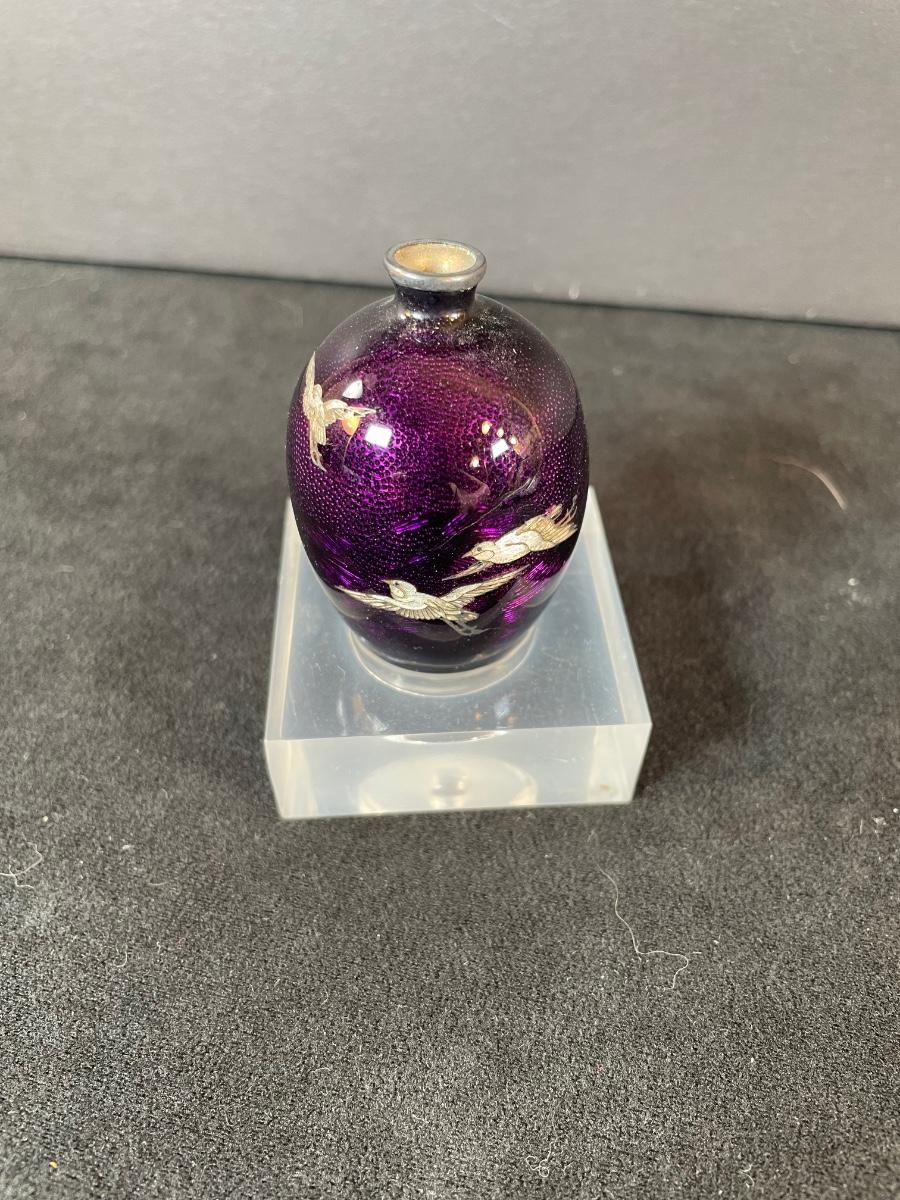 Tiny Japanese Ginbari cloisonne vase on acrylic stand (2")