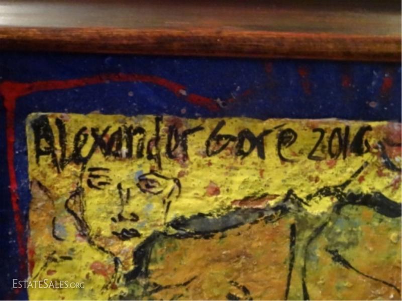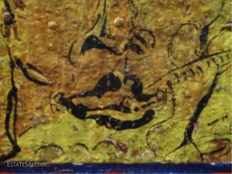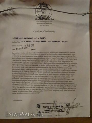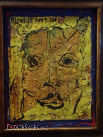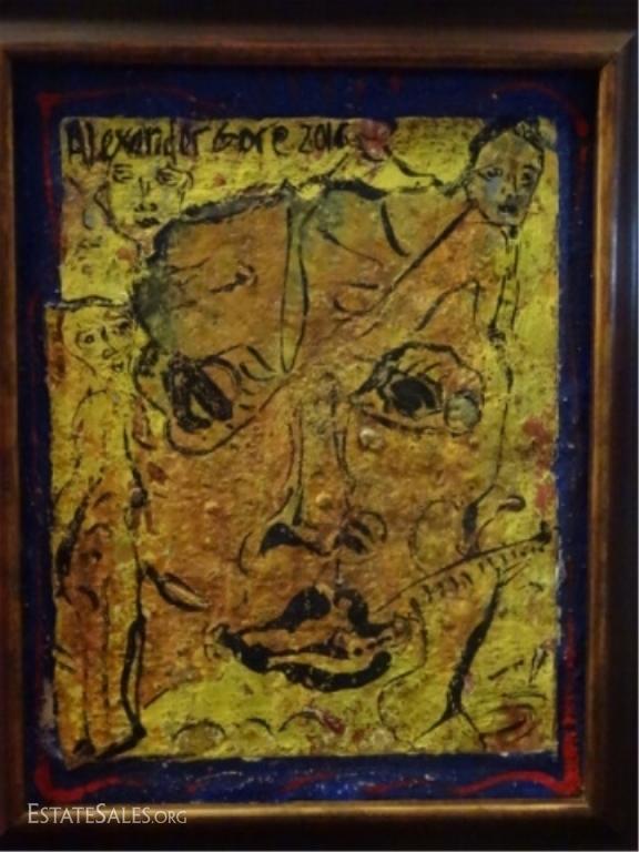 LOT 112: ALEXANDER GORE OIL ON PAPER PAINTING, ABSTRACT YELLOW FACE, SIGNED UPPER RIGHT, WITH CERTIFICATE OF AUTHENTICITY, FRAMED SIZE 19" X 16", SKU131.01