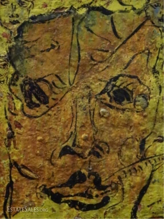 LOT 112: ALEXANDER GORE OIL ON PAPER PAINTING, ABSTRACT YELLOW FACE