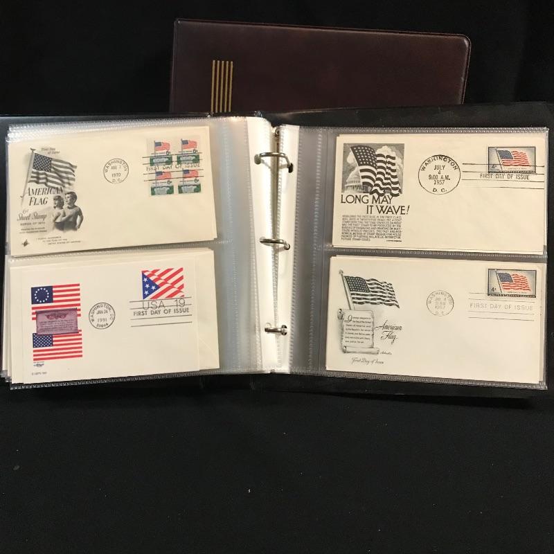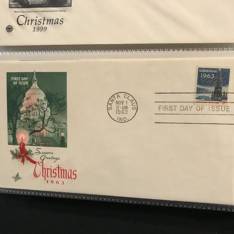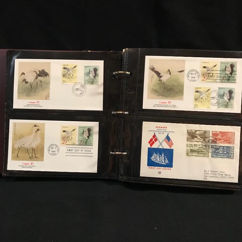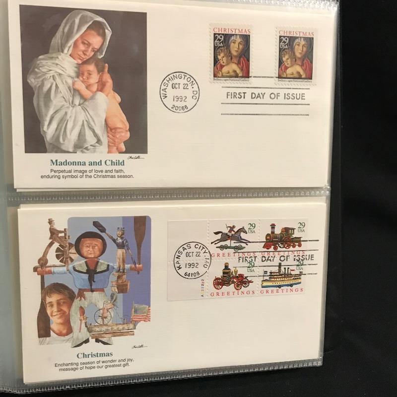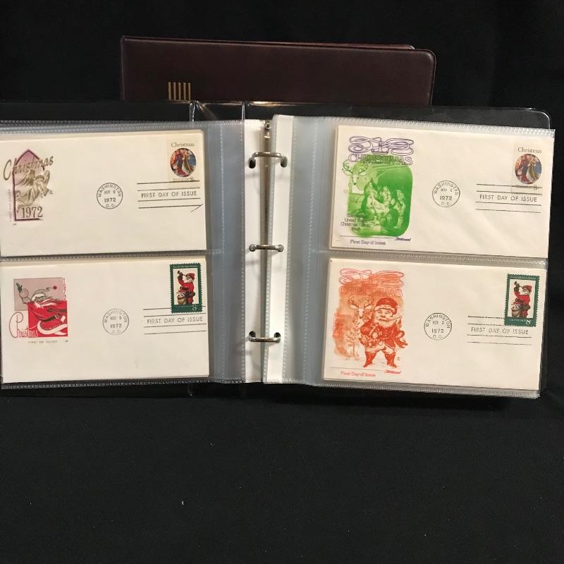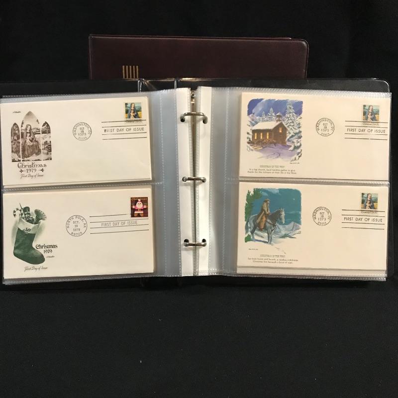 Two binders filled with American and international first day covers. A large selection of mid-late 1900s Christmas stamps along with flags and other various collections. The second binder boasts mainly international cancellations including Grace Kelly and the British royal weddings. Other various international cachet’s and stamps throughout the binder. See photos.