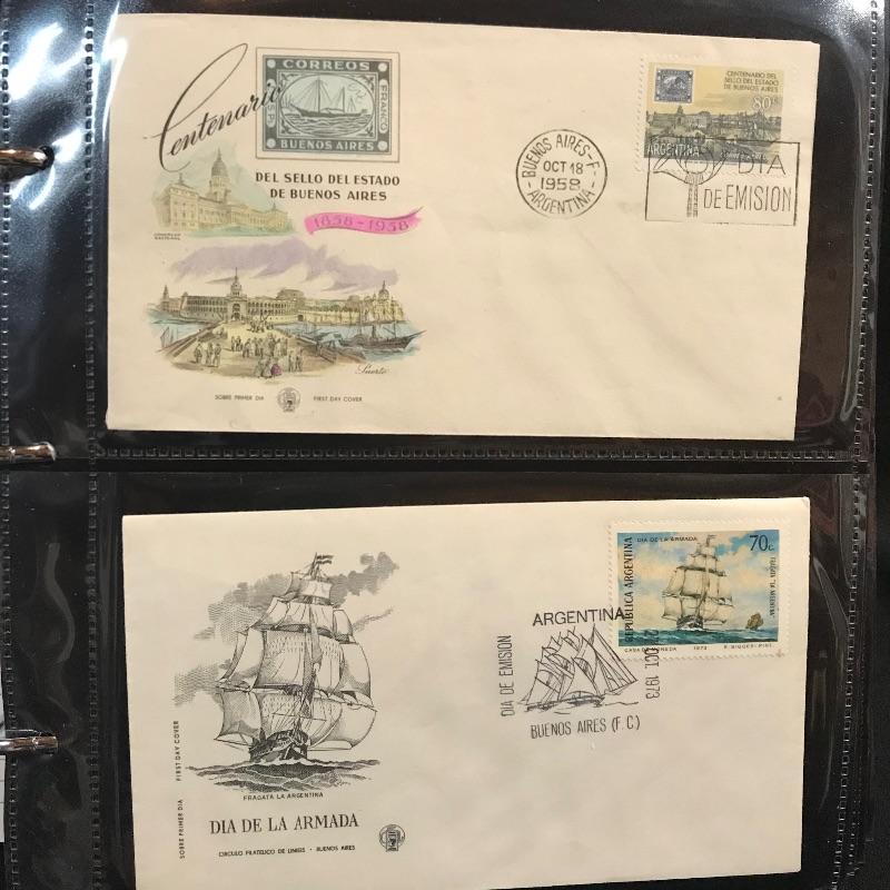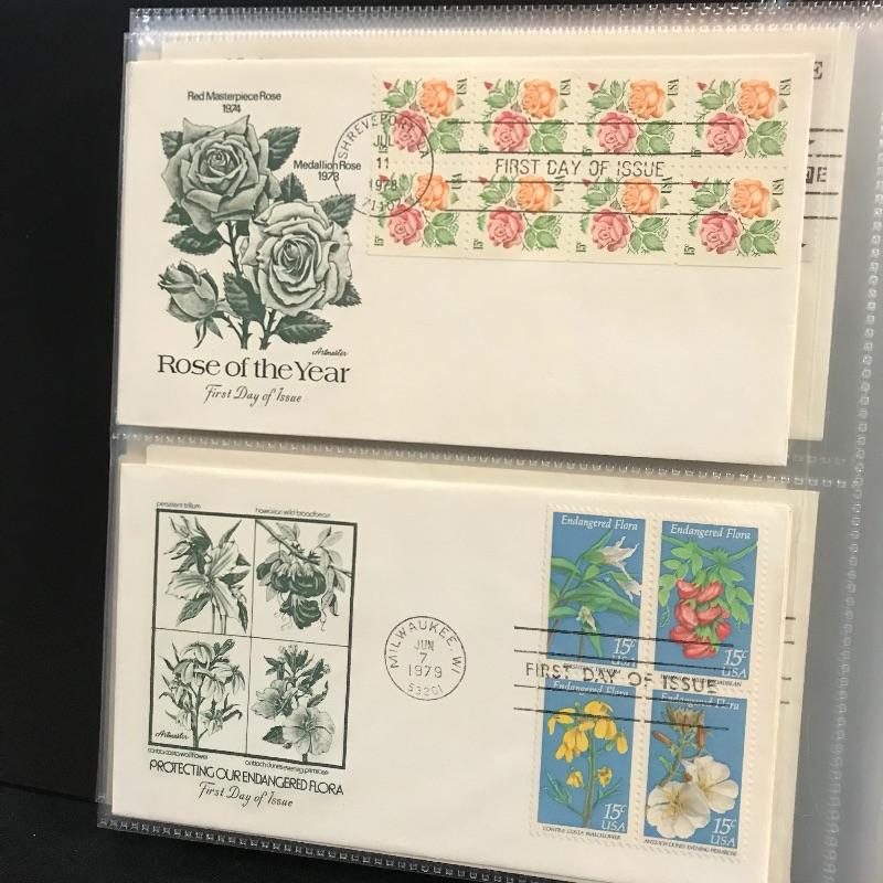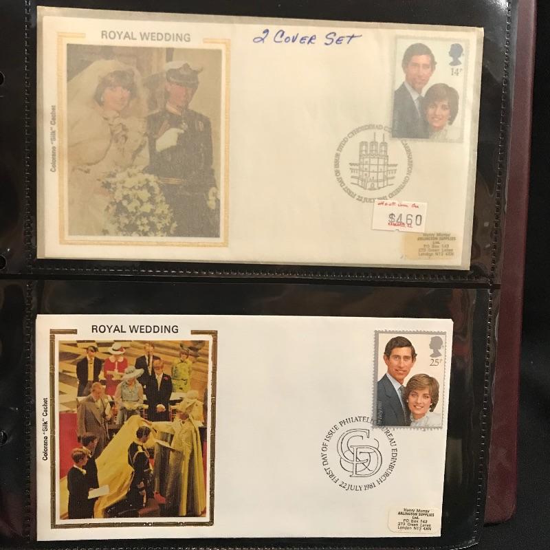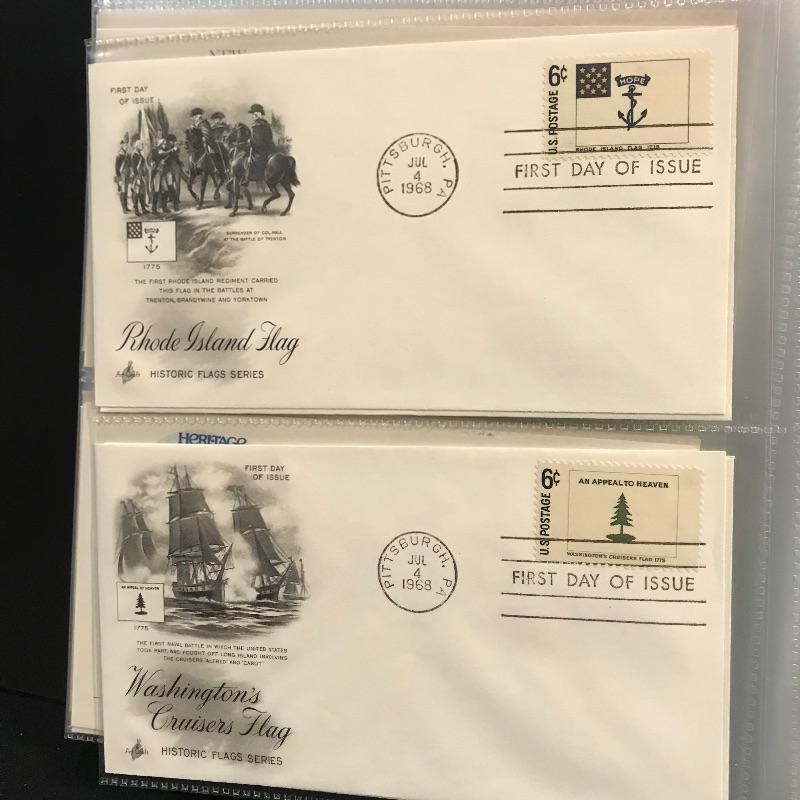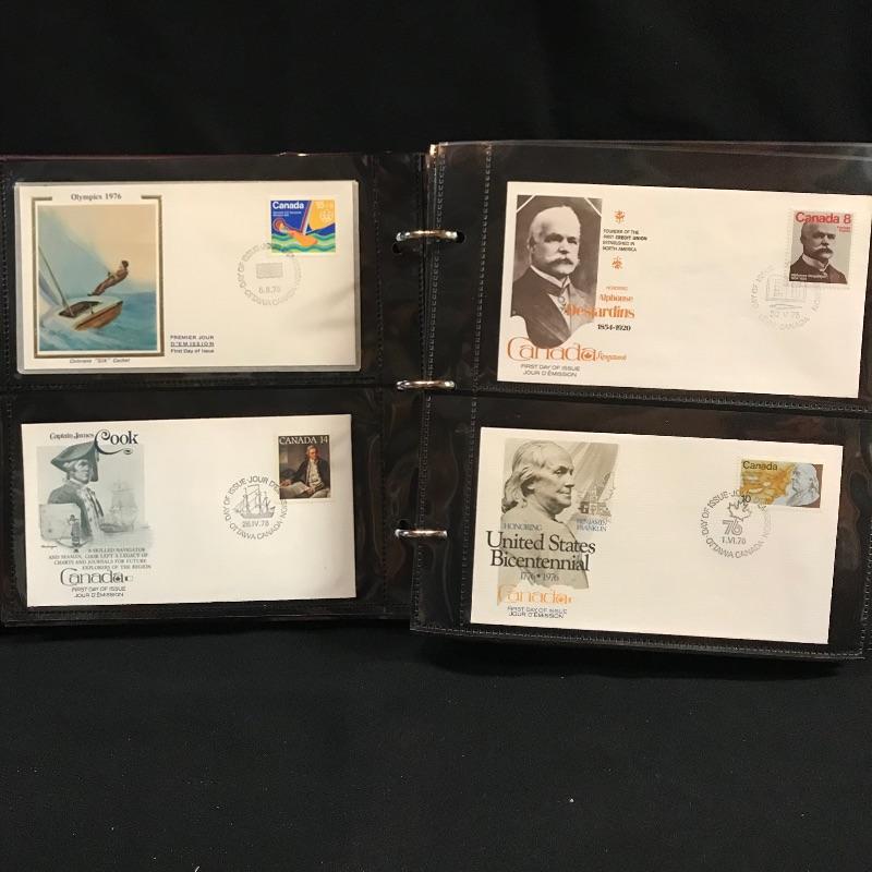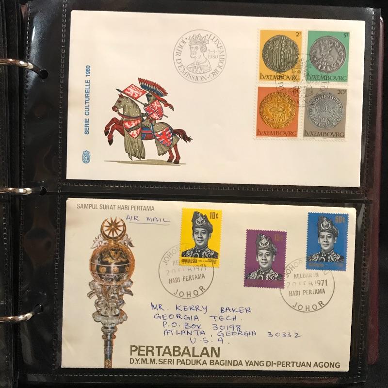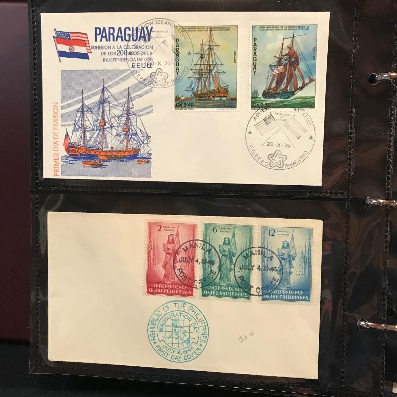 Two binders filled with American and international first day covers. A large selection of mid-late 1900s Christmas stamps along with flags and other various collections. The second binder boasts mainly international cancellations including Grace Kelly and the British royal weddings. Other various international cachet’s and stamps throughout the binder. See photos.