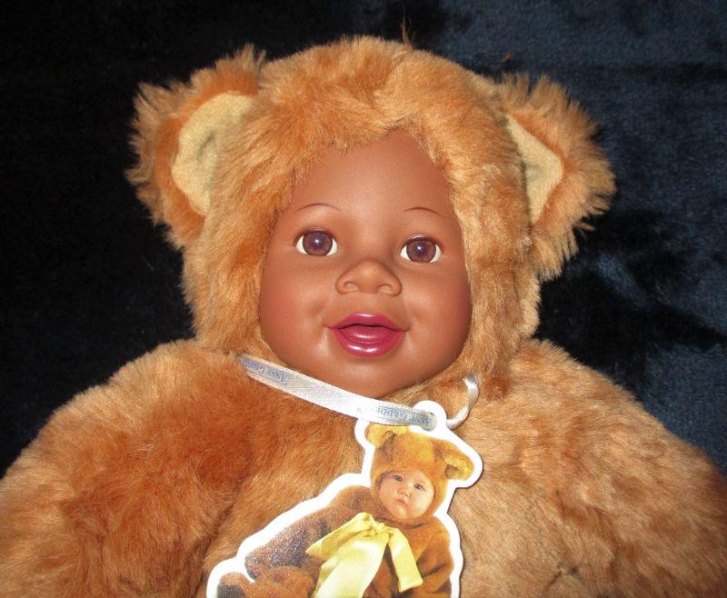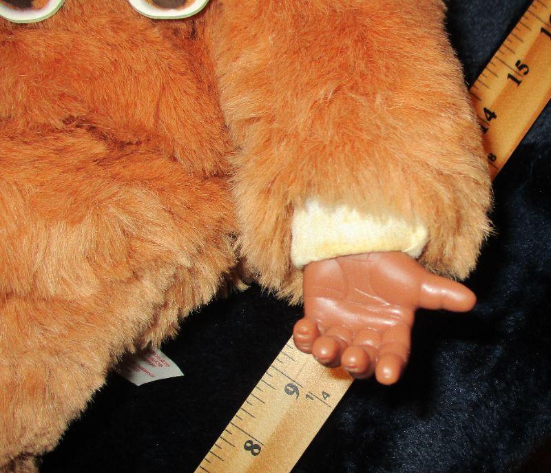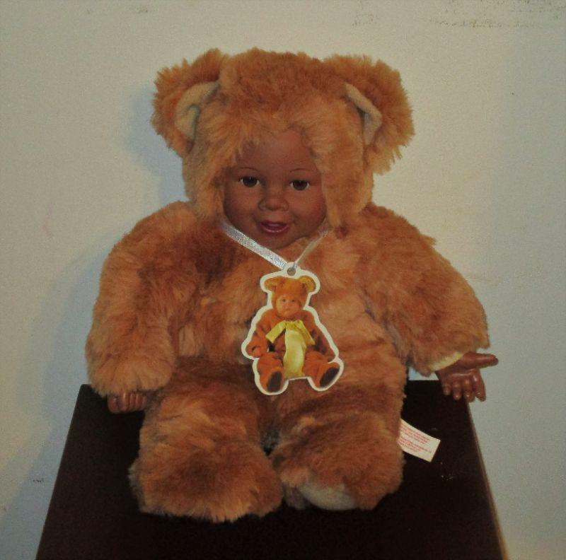 This sweetheart appears to be in great condition and is about 15" long. The only issue that I found was a little discoloration around one wrist where the hand is attached to the clothe.