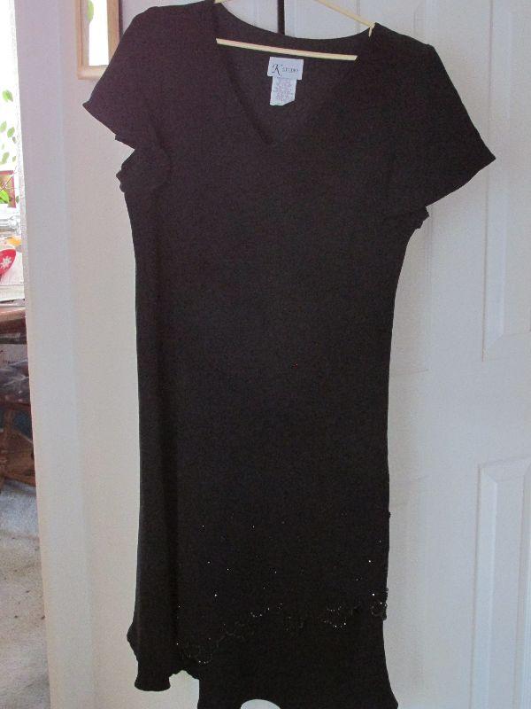 Black K-Studio sleeveless dress with beaded design on bottom. Size 16. No significant wear noticed.