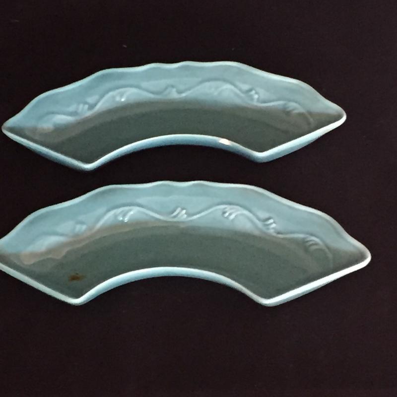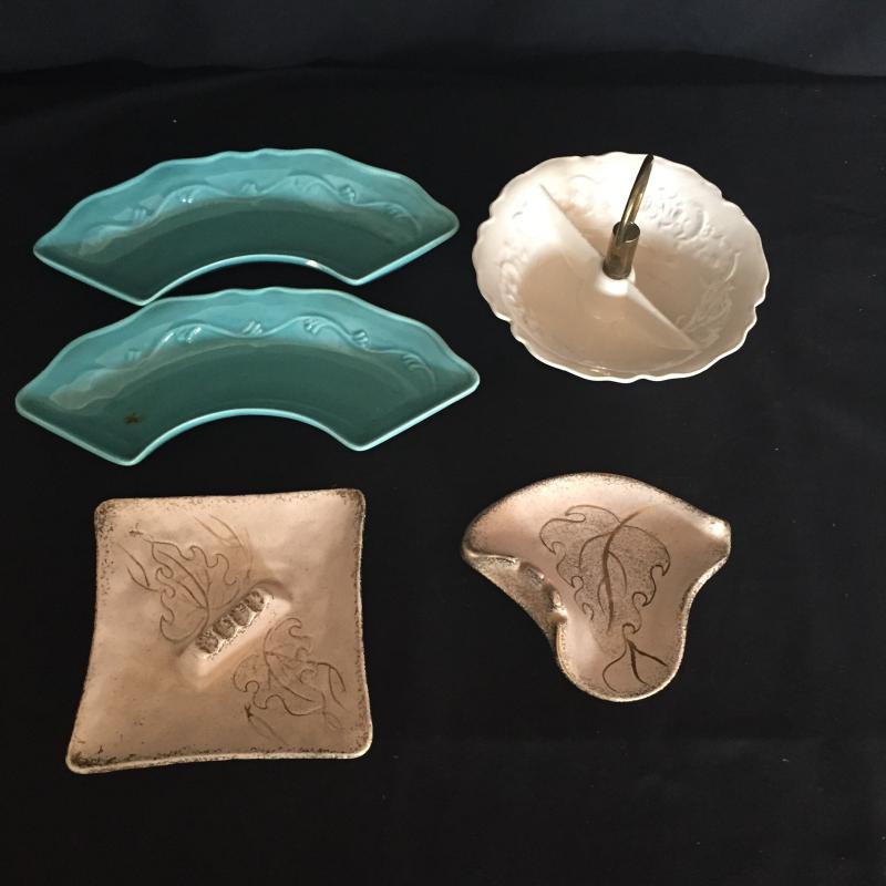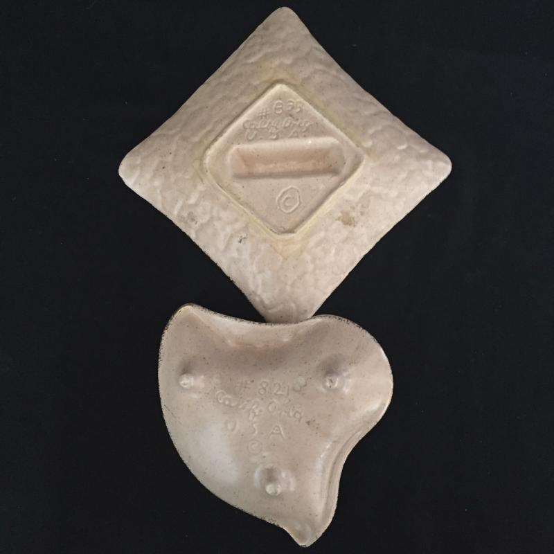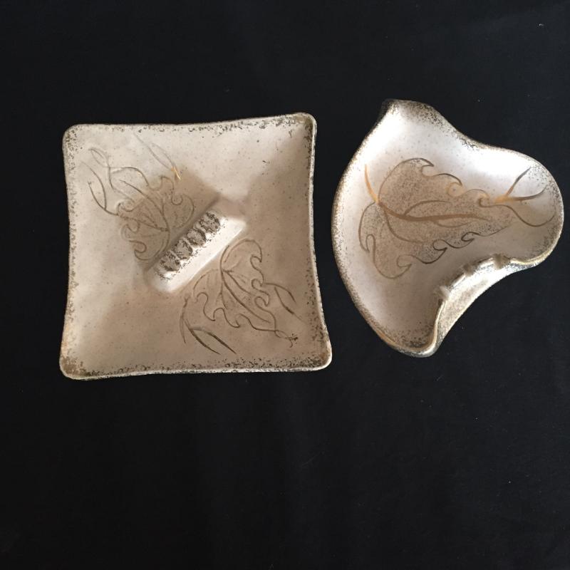 # 821 #833, pair of Maurice of California Aqua Trays and Bowl. Square Ashtray Measures 5.5” x 5.75”.