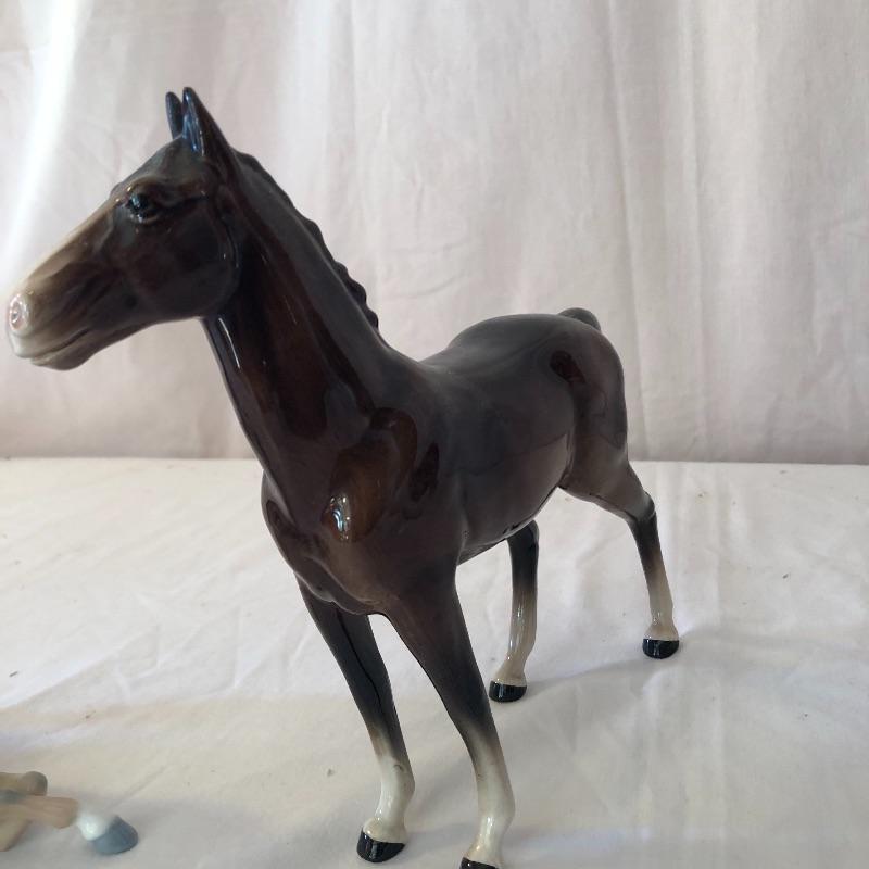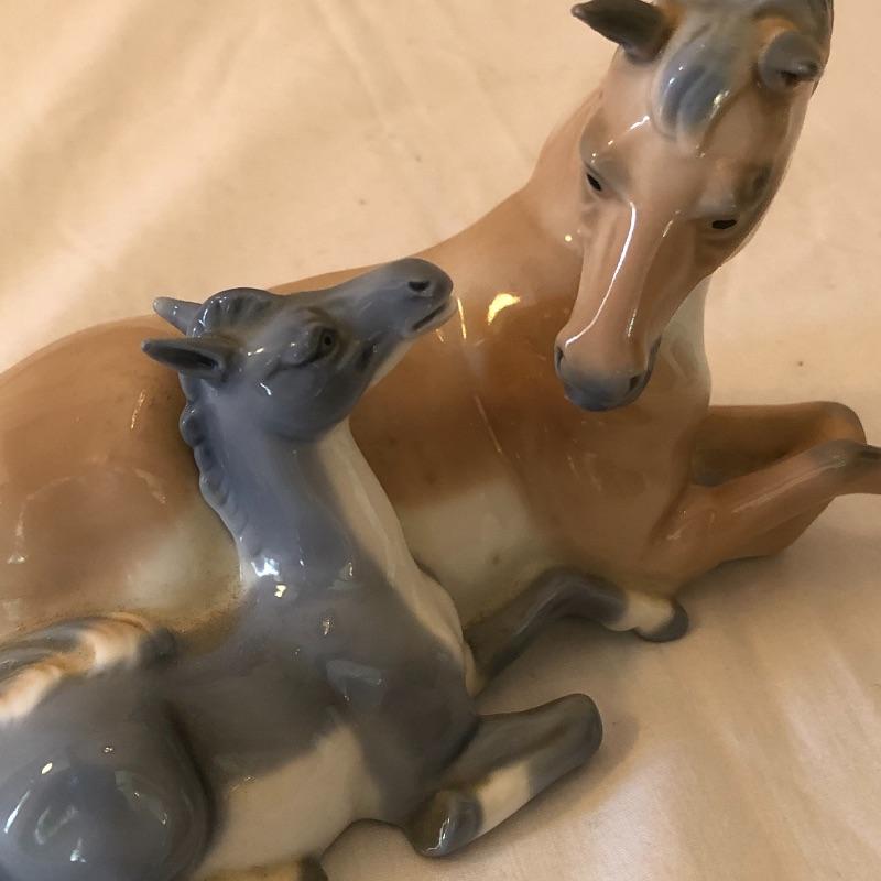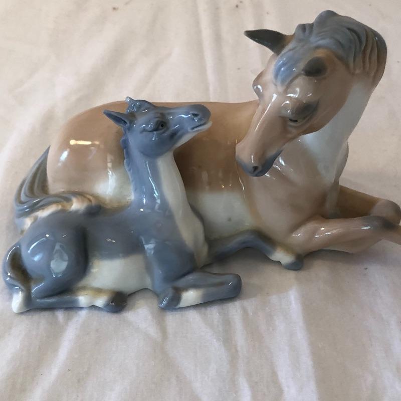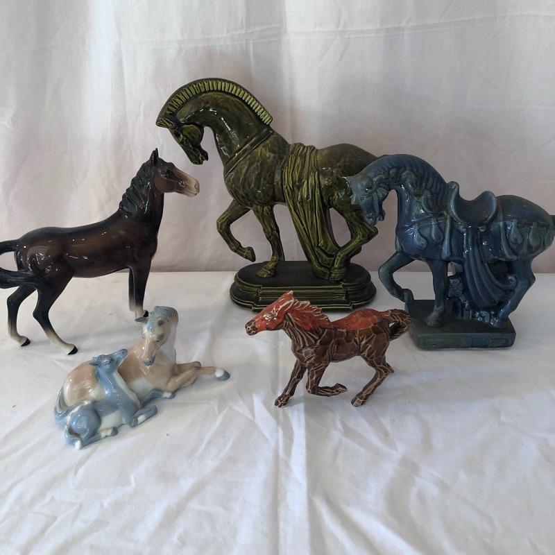 This lot contains five unique ceramic horse statues. The largest horse is 12” x 12”. The mother horse and foal are named “Tenderness”and from the Franklin Mint. Shipping available.