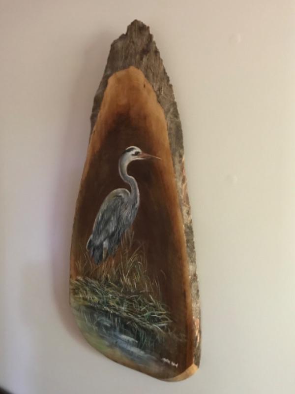 Lot #112 Fran Martin Dixon Signed Great Blue Heron Painting On Wood