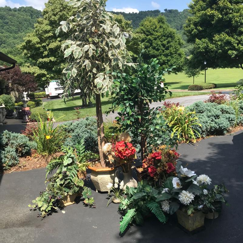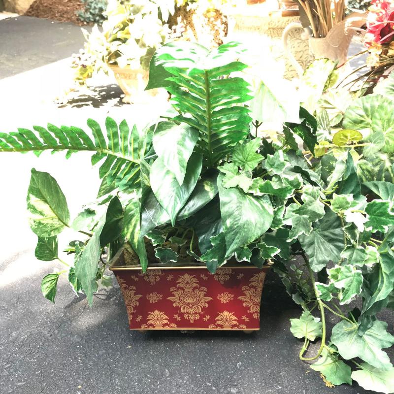 Large lot of faux plants. Tallest is approx. 82”. Some are in pots, others hang on the wall. No shipping