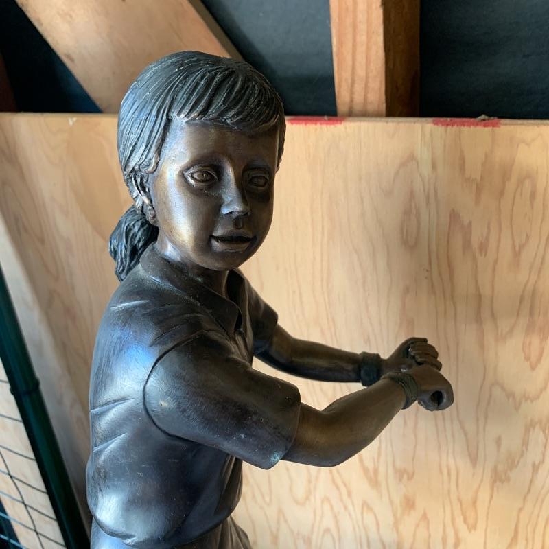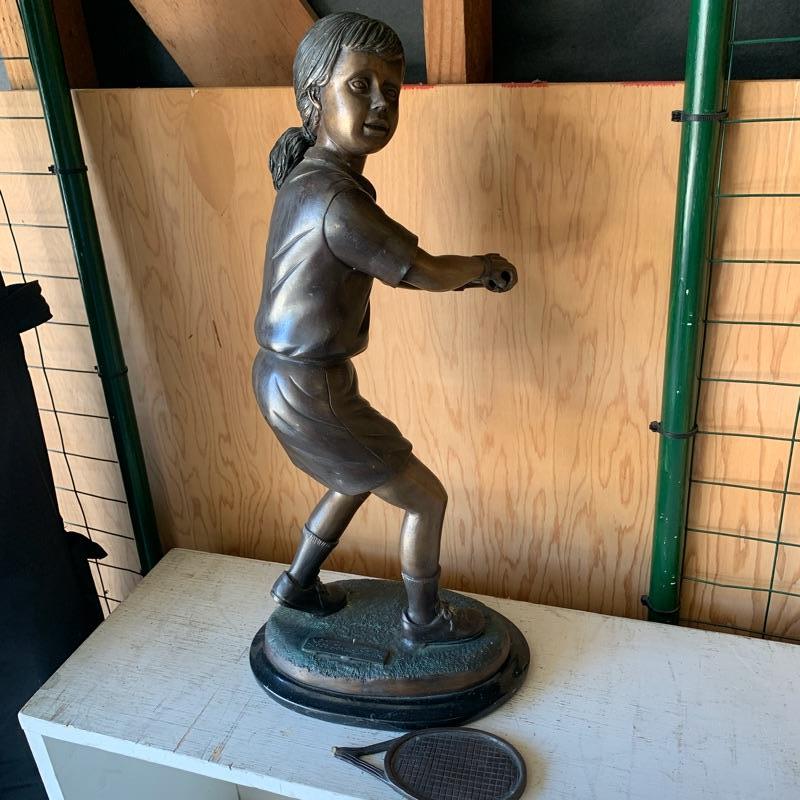 Girl Playing Tennis Bronze Statue 20.5" Tall. This Bronze has a broken racket