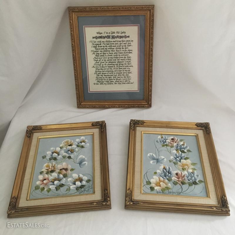 Florals measure 13" x 12" and calligraphy is 15" x 12". This lot is available for shipping or local pick up in Asheville, NC.