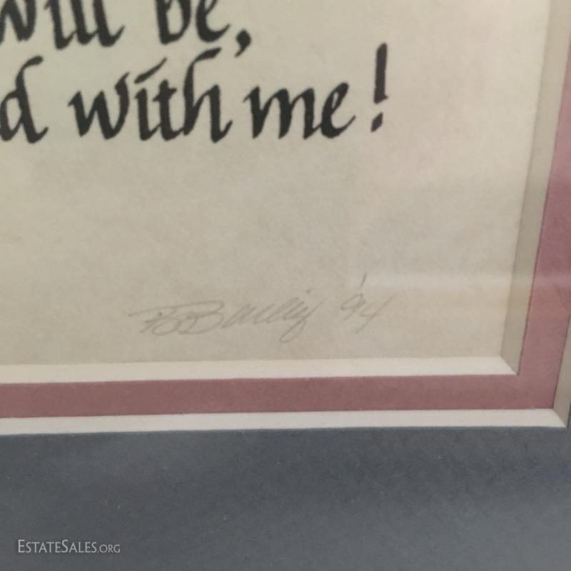 Two floral paintings by Beth Ann Posey, nicely matted and framed and Calligraphy by Bailey.