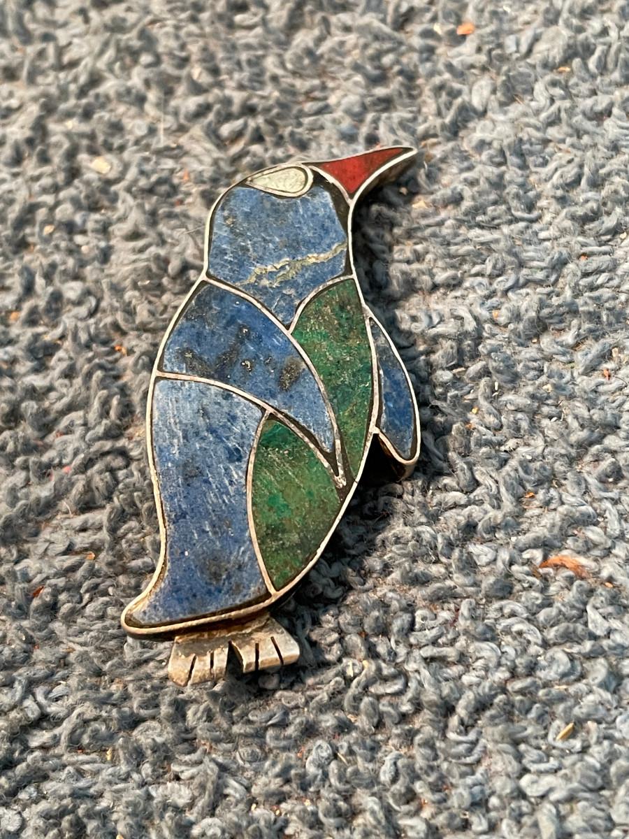 LOT 112 GREAT 980 SILVER INLAY PENGUIN PIN