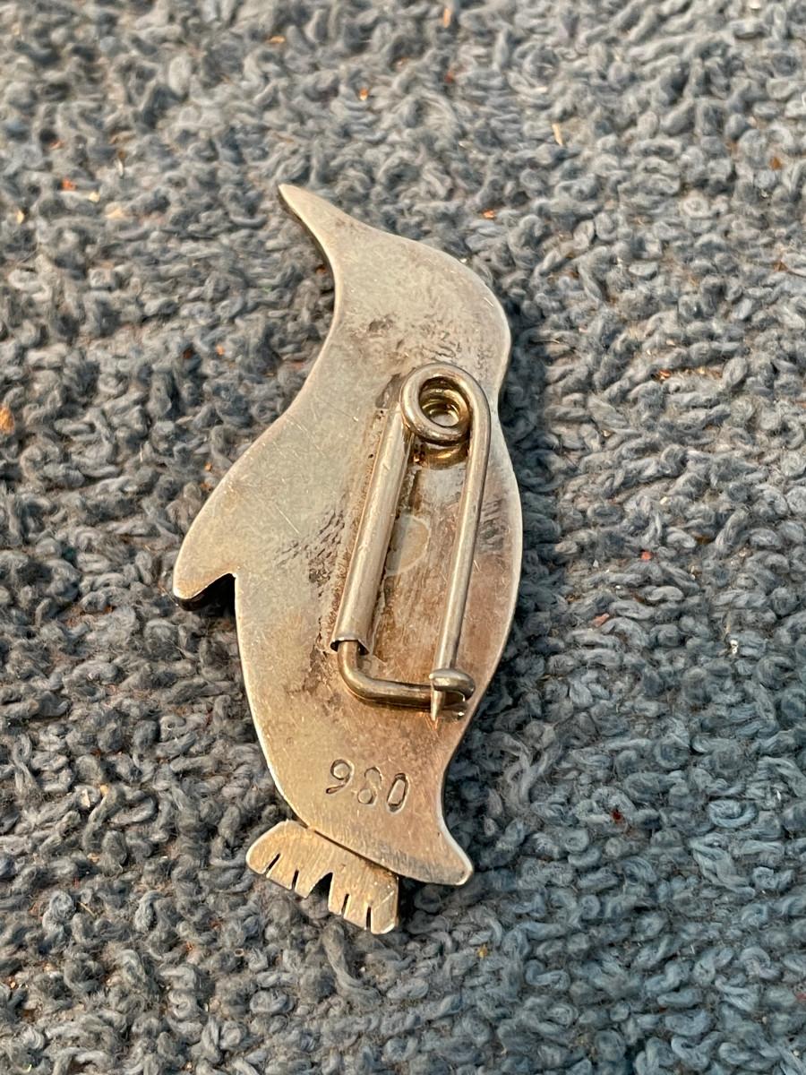 THIS IS A GREAT 980 SILVER INLAY PENGUIN PIN!!! 980 IS BETTER THAN STERLING, MORE SILVER.. 6.82GR TW.. LIGHT WEAR..