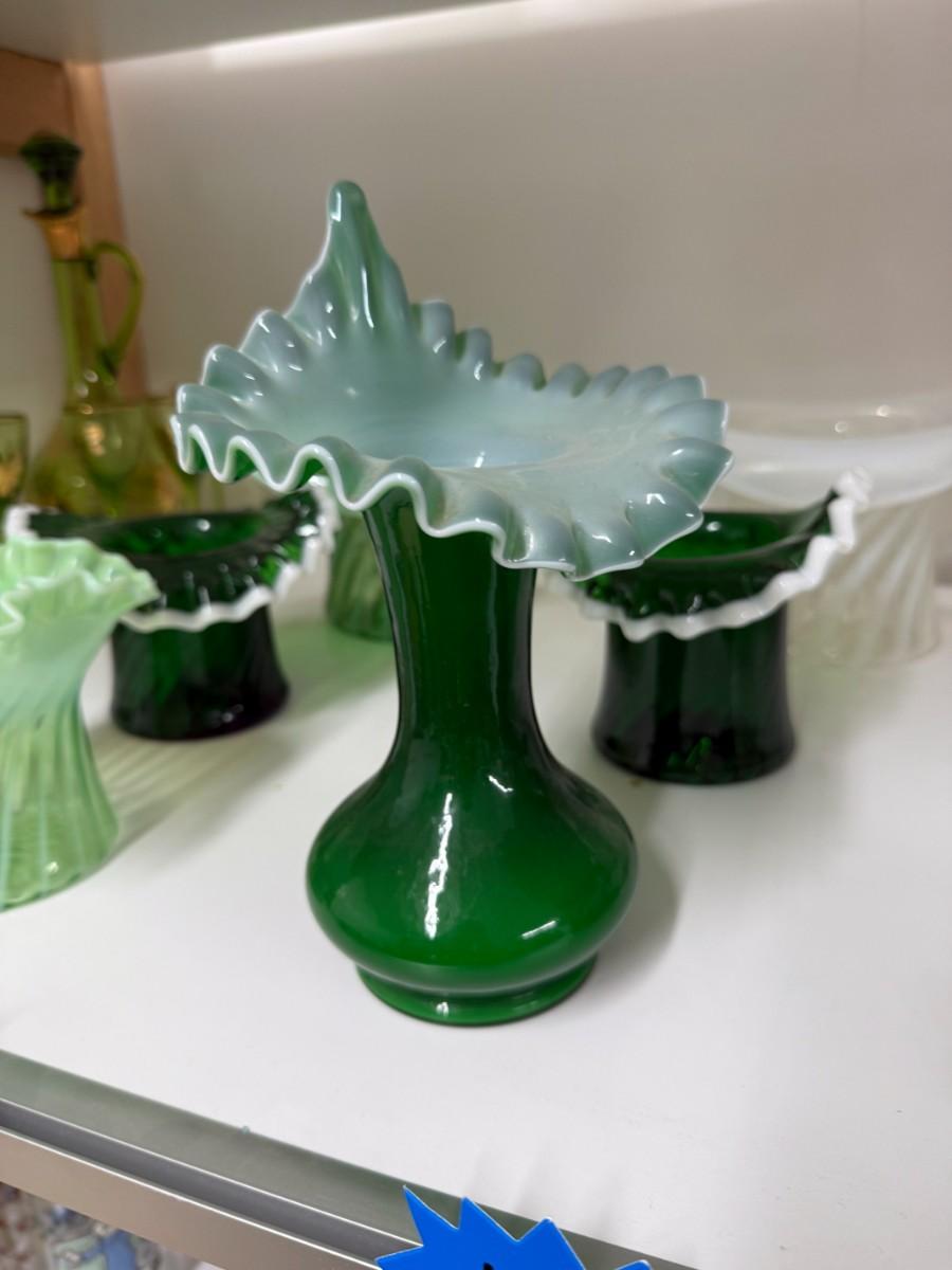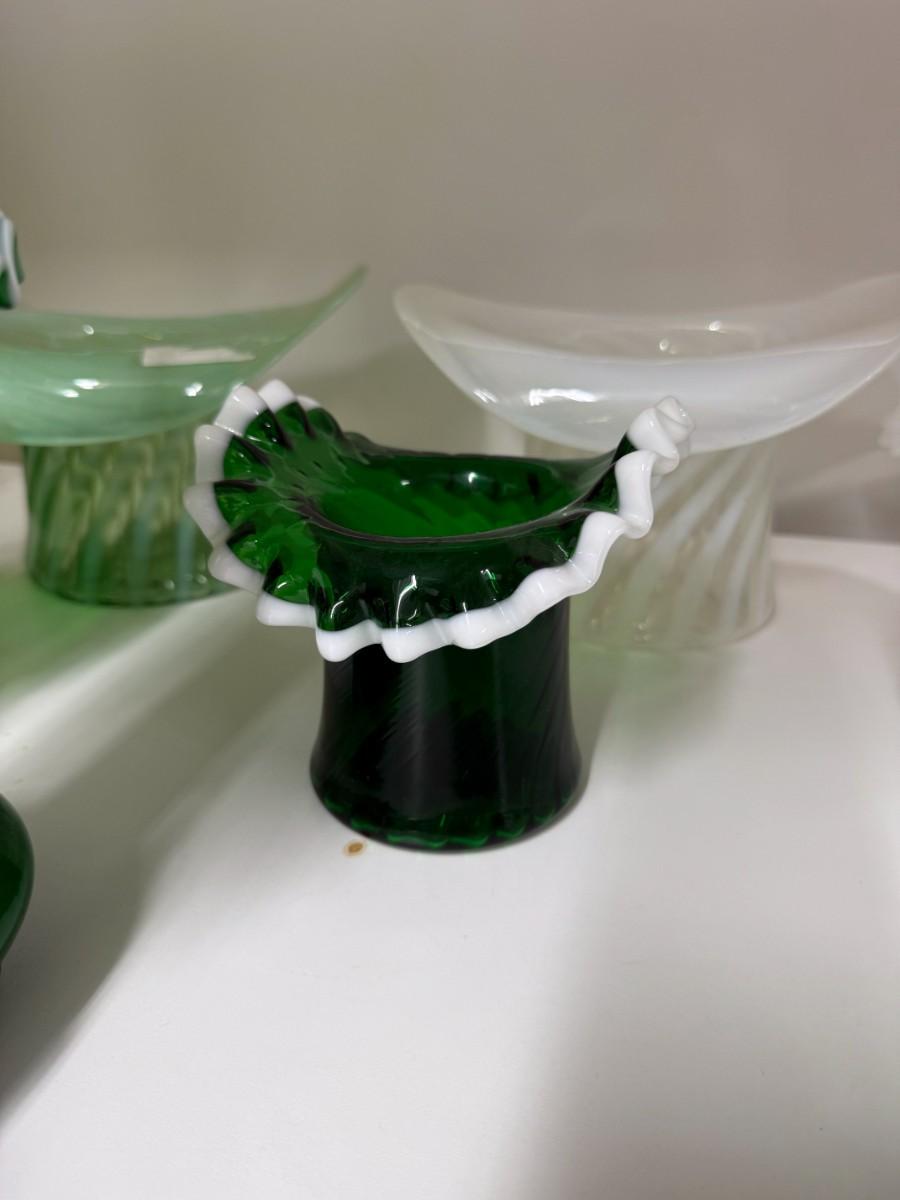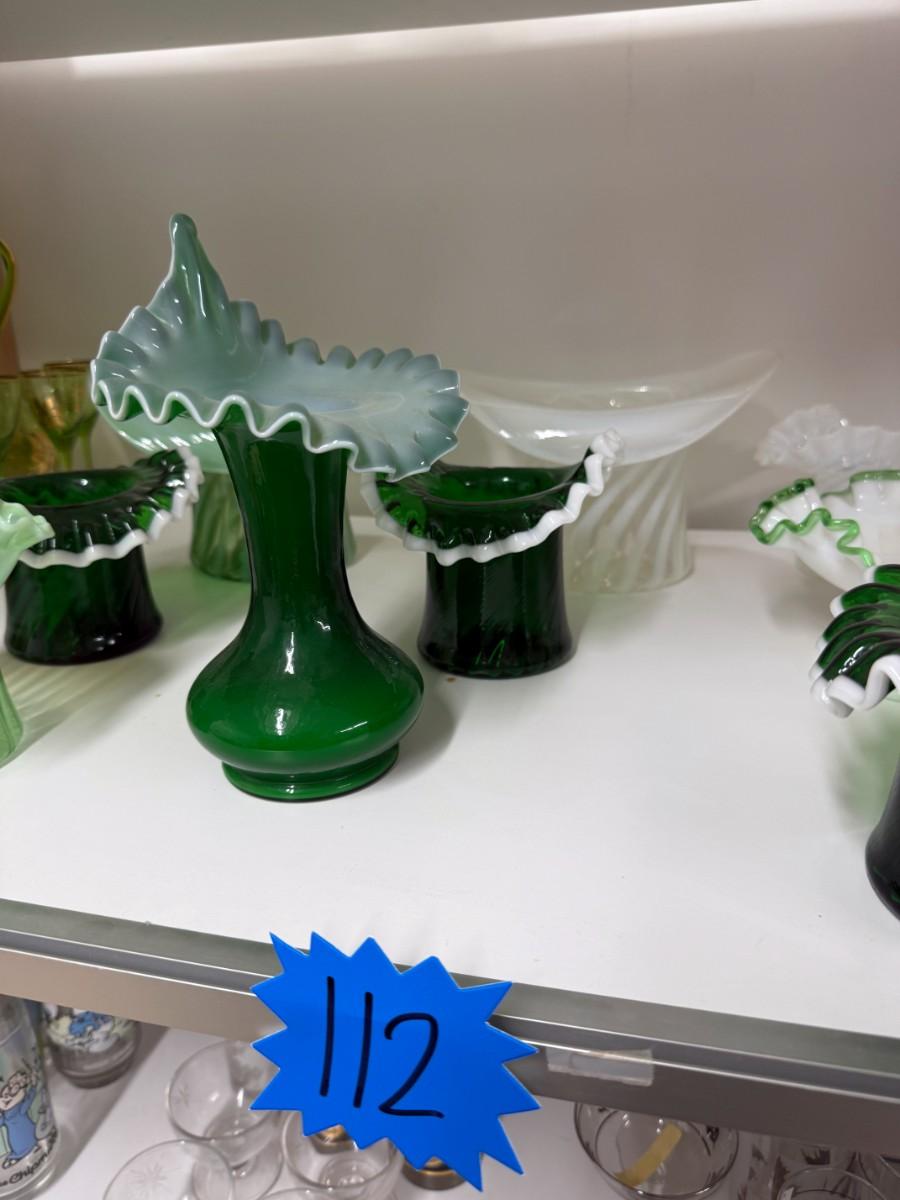 Lot 112 - Green and White Glassware