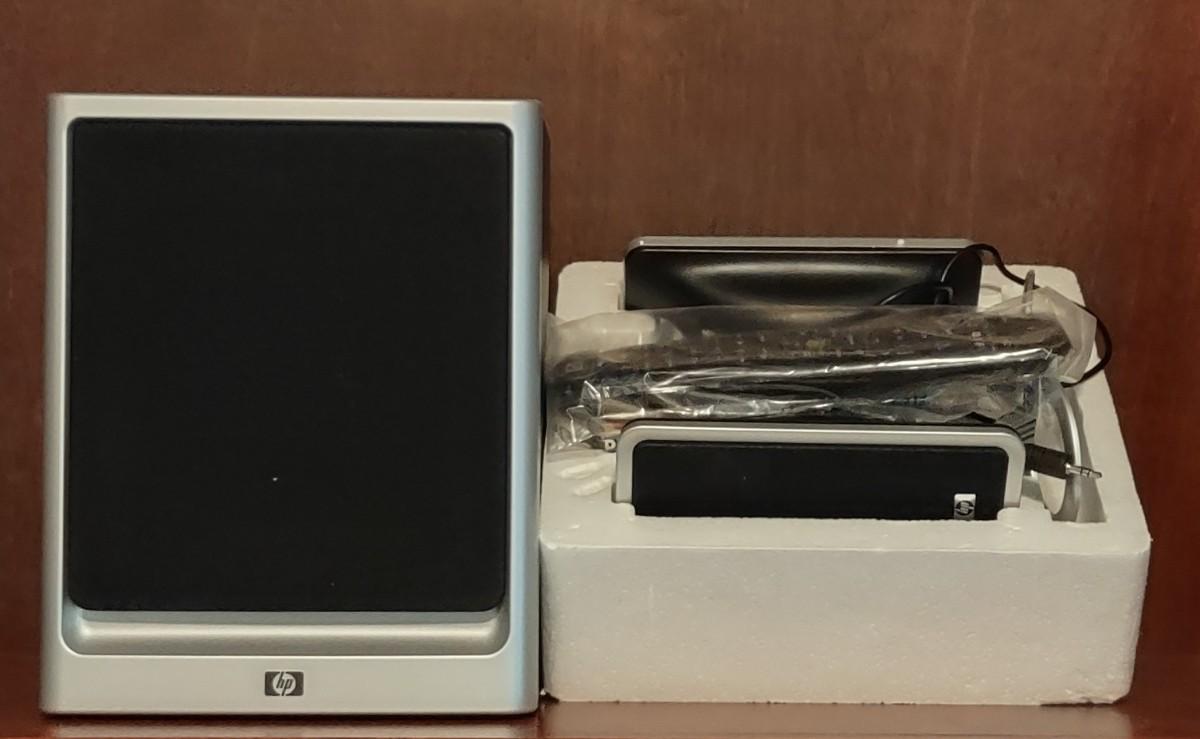 HP Speaker System New In Box. Please see all pictures as they are the best representation of the items. The pictures show condition, measurements if taken, and what is included in the lot. Due to the large amount that we photograph and the time frame, we are not always able to take measurements. All items unless noted, are pre-owned and have been used. If you purchased furniture, you must bring help. We do not allow one person to carry large furniture out on their own. Bring help, tools and a truck for the safety of our client’s homes, and your personal safety. Company policy. Thank you.