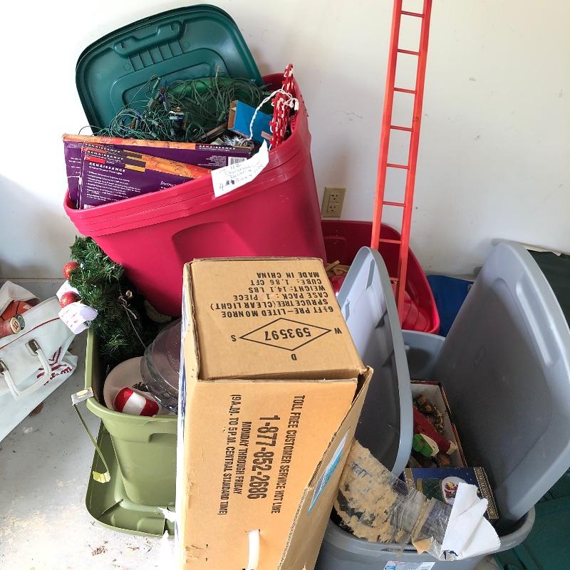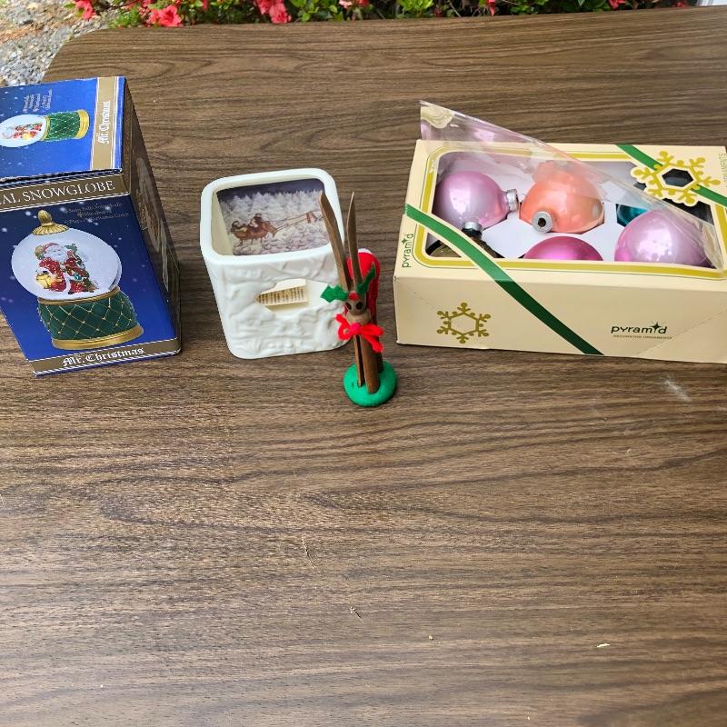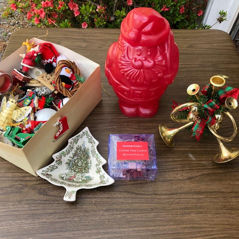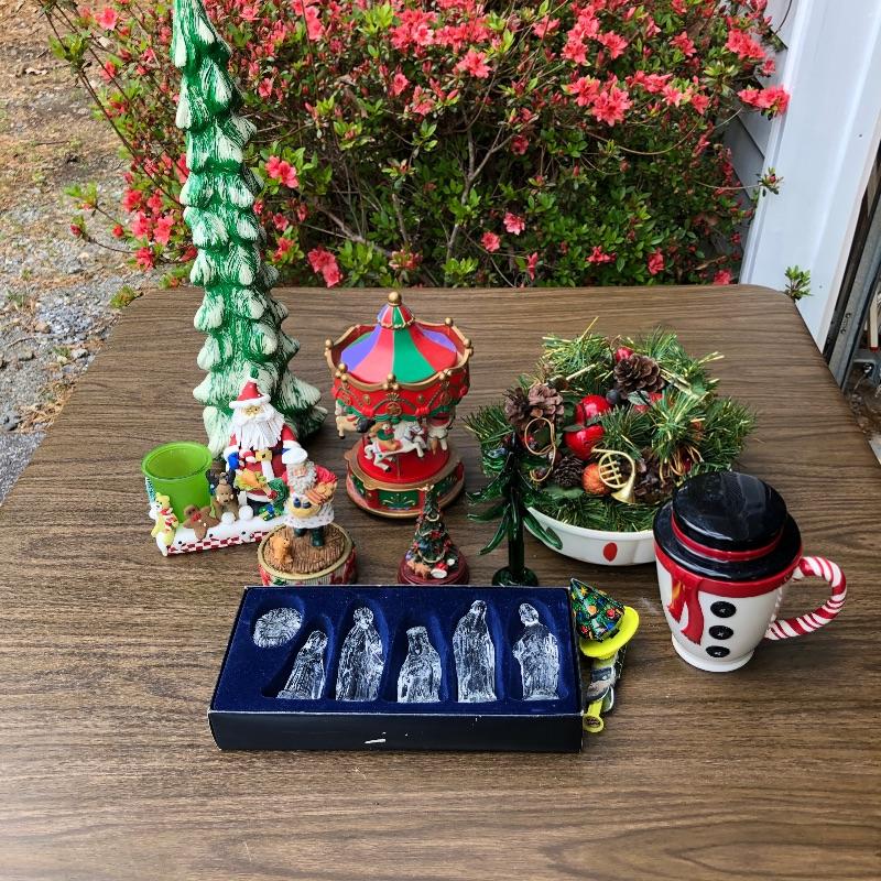 All you could possibly need with this fantastic assortment of Christmas items. To list just a few....a 6.5 ft tree with lights, tree ornaments galore, wreathes, nativity set, music boxes, plates, vintage retro tree skirt and so much more and we have even thrown in a bunch of storage boxes to keep them packed away until the holidays! See images for all that is here.