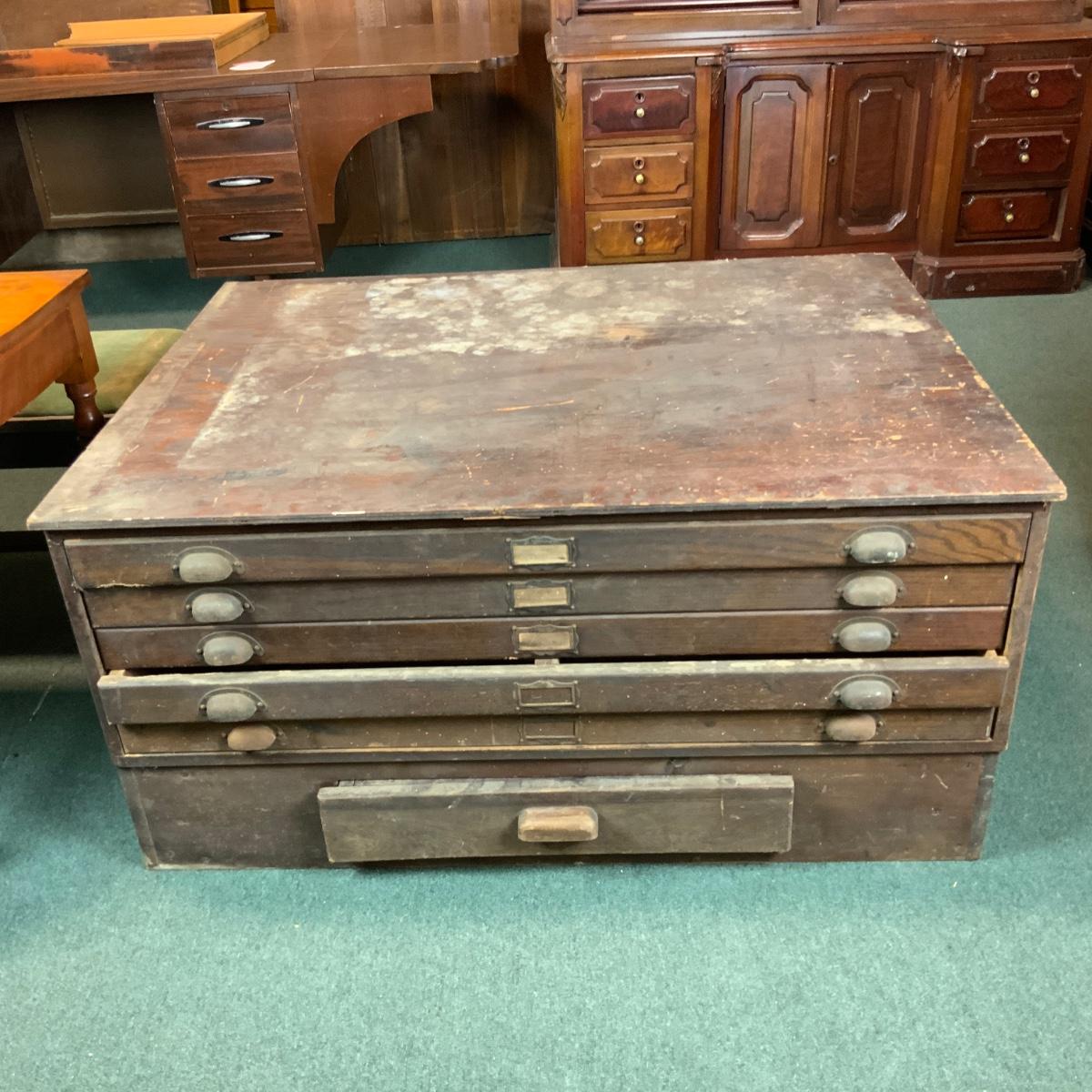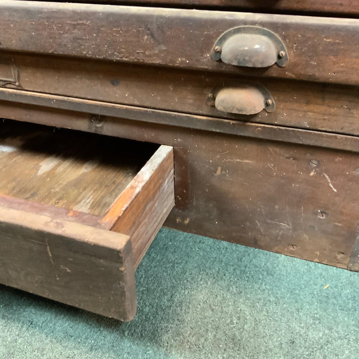 Industrial Salvage Cartographer’s Chest Restore it, get a piece of glass cut for the top. Use it as a coffee table. //::\\ Please see photos for details and condition. No attempt has been made to hide any imperfections. All items listed in this auction are warehouse items, and need to be cleaned. A majority of the items need restoration as well. All items are sold AS IS and WITHOUT GUARANTEE. If you are uncertain about an item, DO NOT BID. Due to the nature of this online auction in-person inspection is HIGHLY recommended. All Sales are FINAL. Pick Up Times are FIRM. Please confirm with your own schedule that you can pick up in the scheduled times listed in the Terms and Conditions. Any questions please message the auctioneer. DO NOT Contact The Harp Gallery.