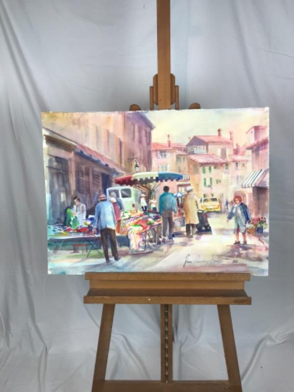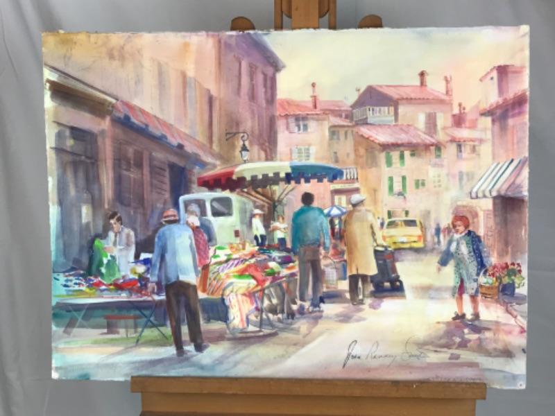 Jean Ranney Smith signed original watercolor “Nice Market”, measures 29-1/2”x22”
