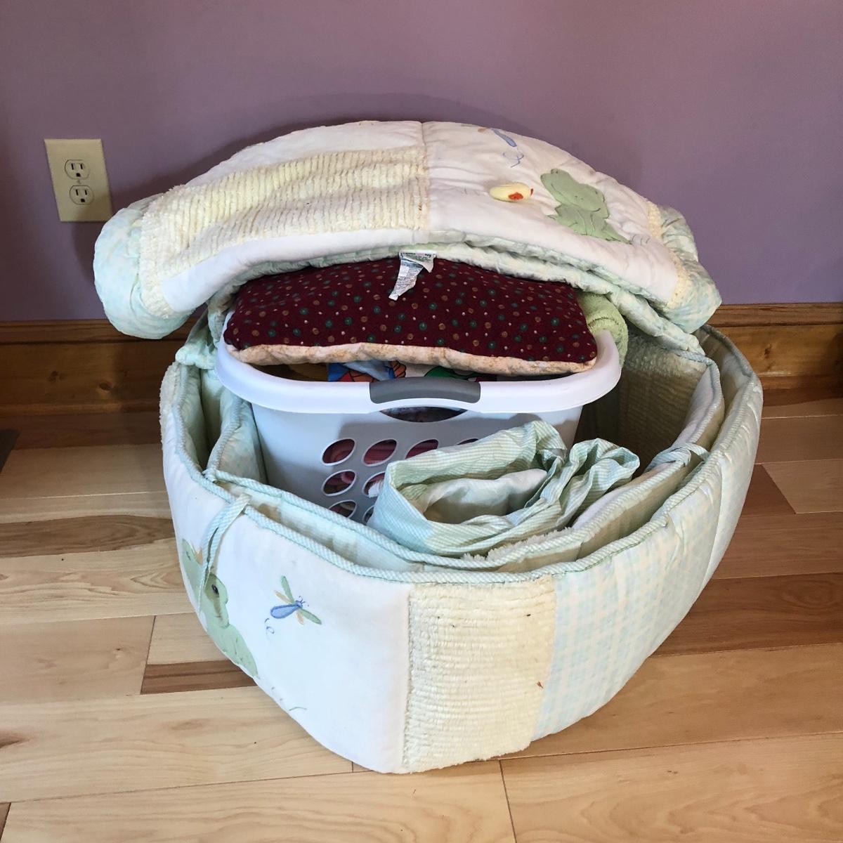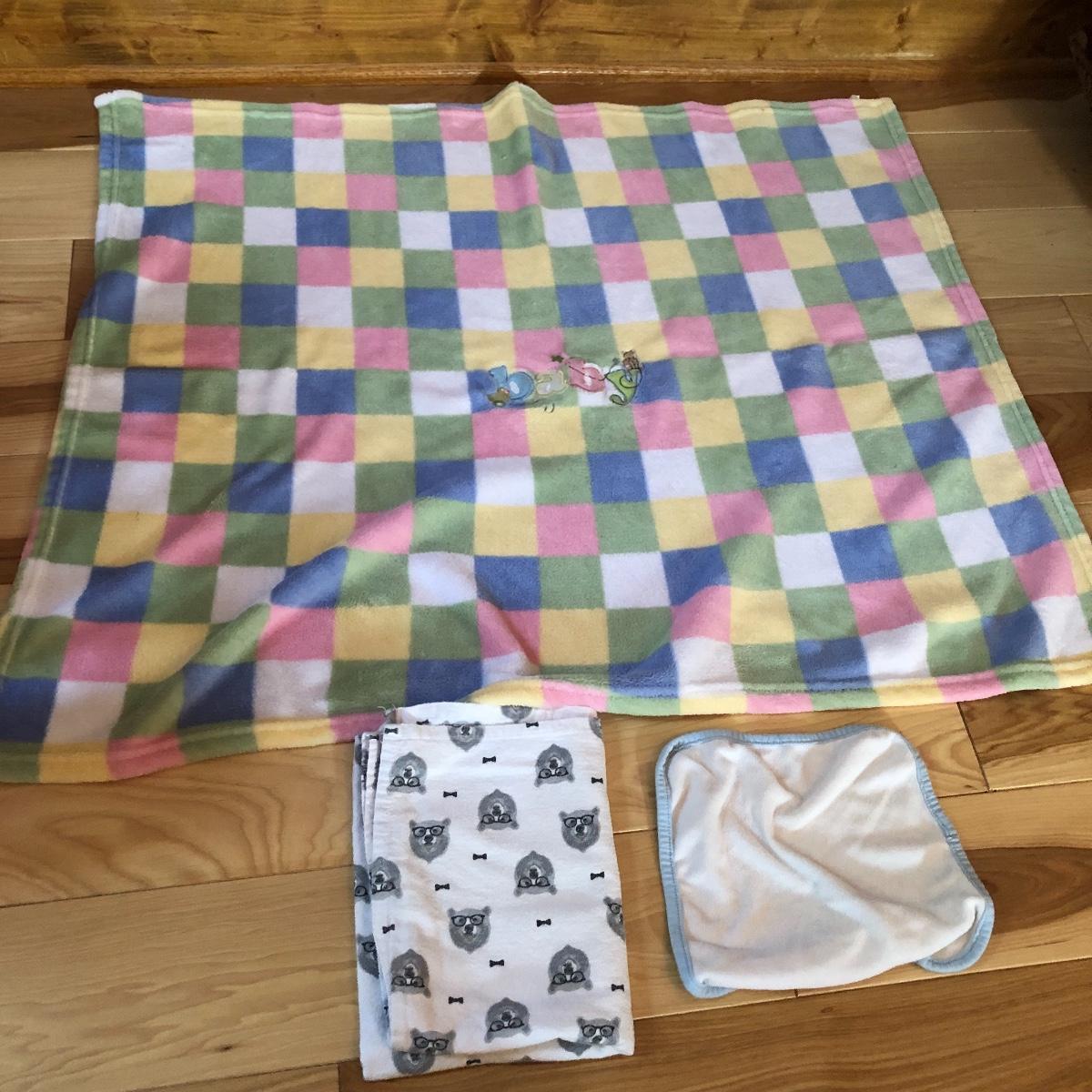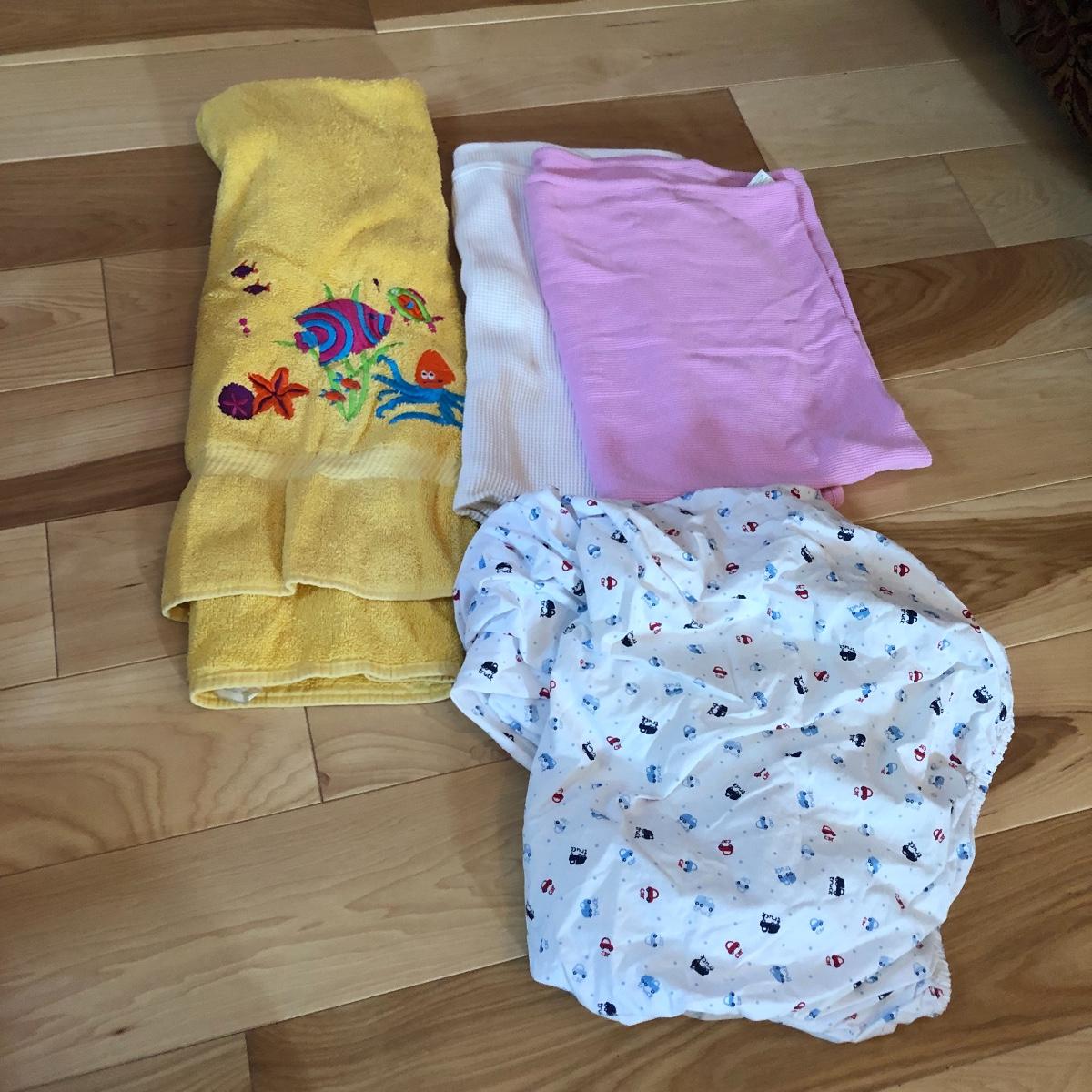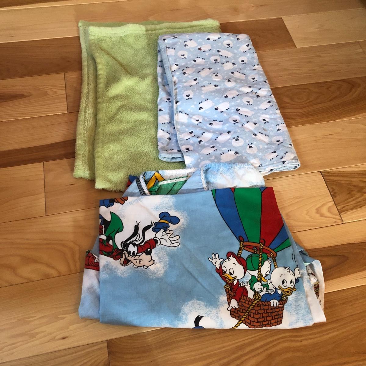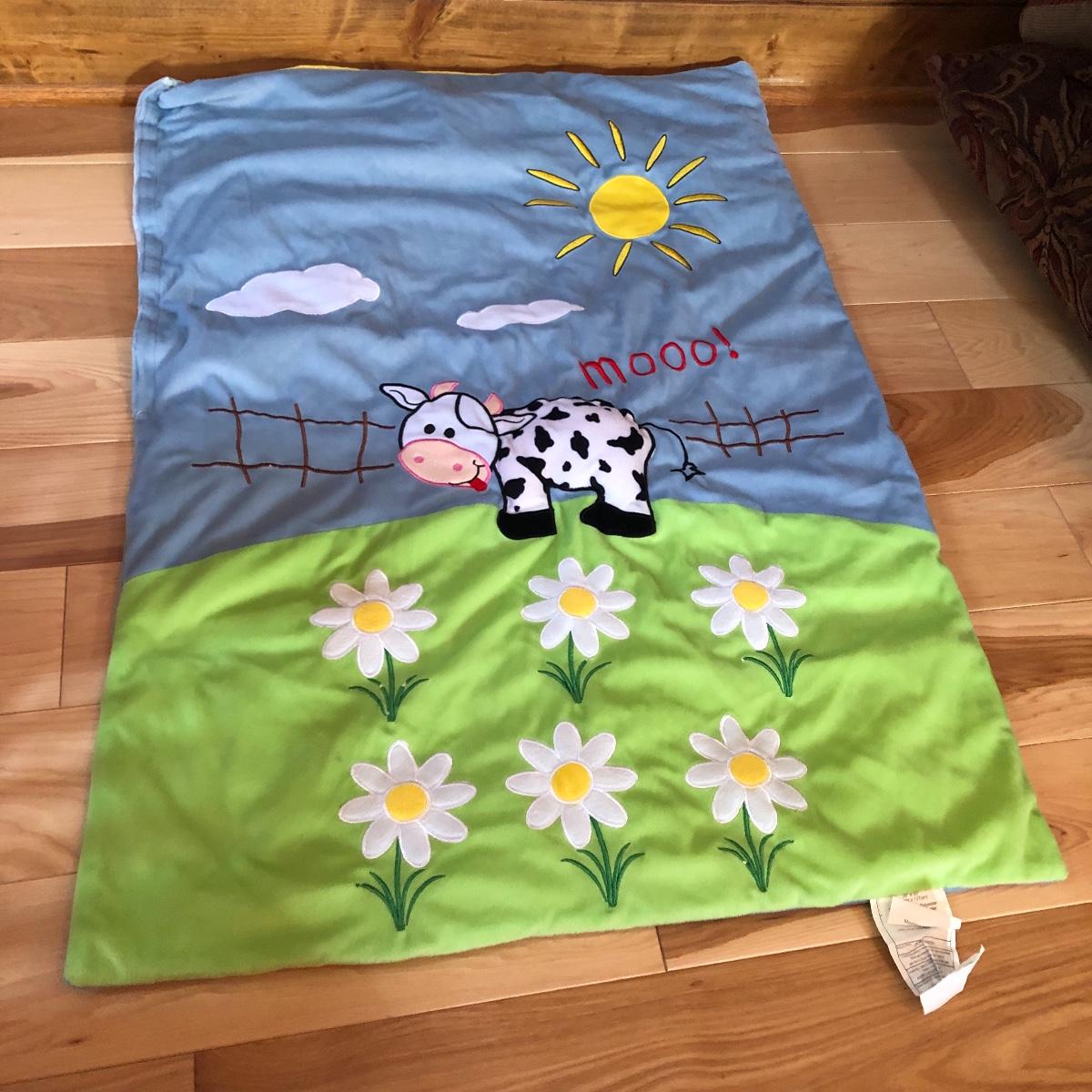 This lot includes a lovely collection of children’s bedding that will keep your child or grandchild warm and cuddly. This lot includes a matching bumper pad, blanket and sheet for a crib, a large selection of blankets, sheets and towels. The cow blanket measures 28” x 46”.