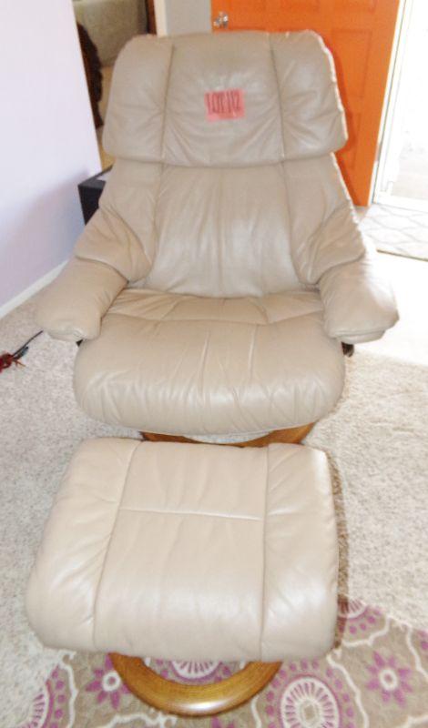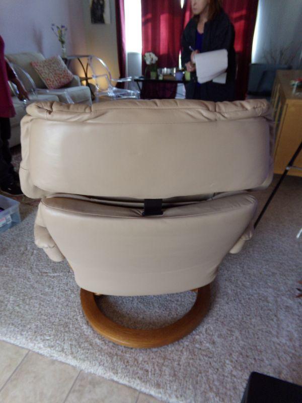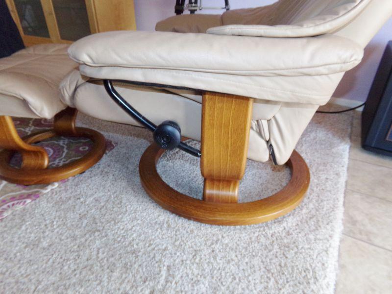 Teak & Leather Swivel Lounge Chair with Ottoman