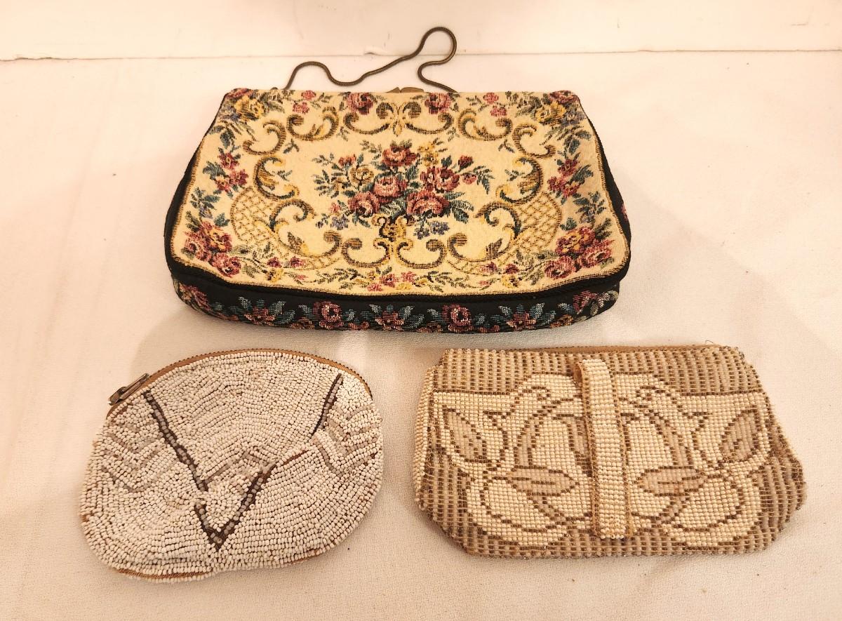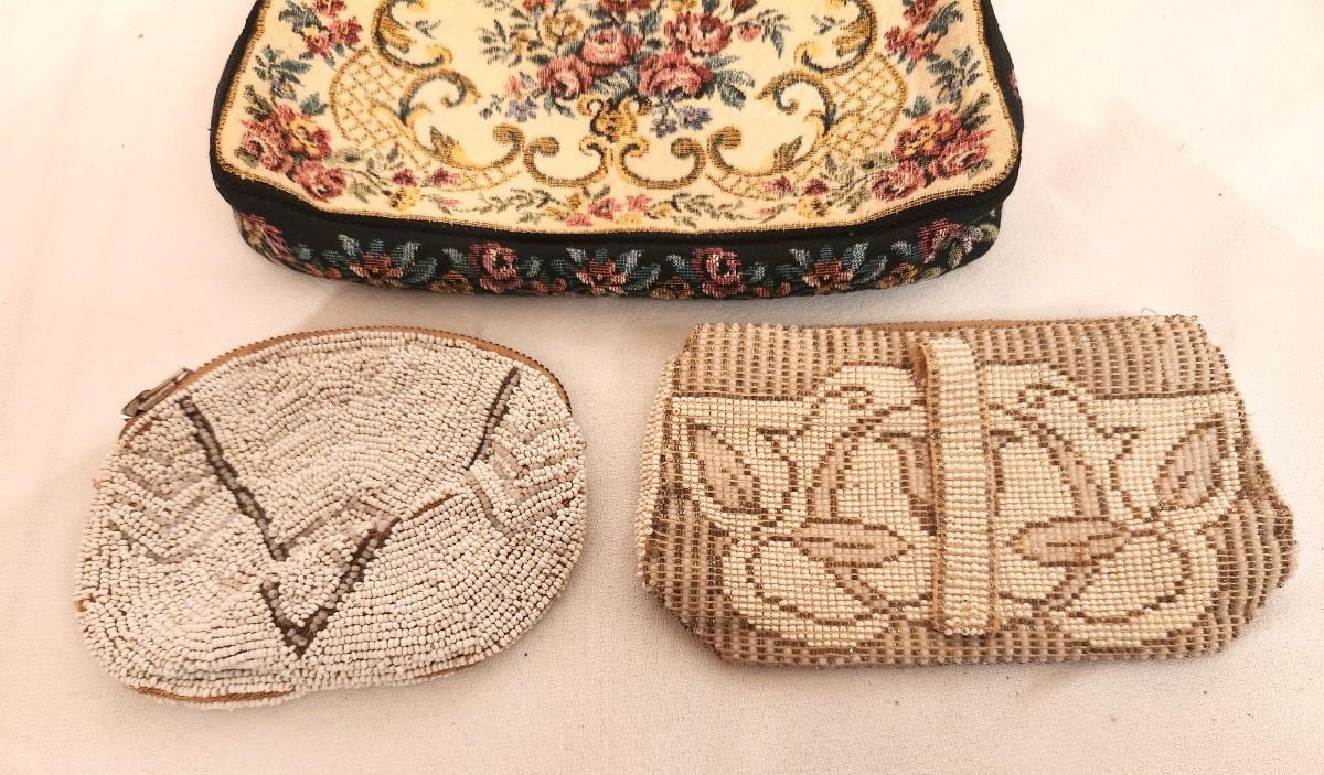 Nice lot of 3 antique/vintage purses - largest made in Germany - 2 beaded small bags, the one on the right is Czech. Good vintage condition.