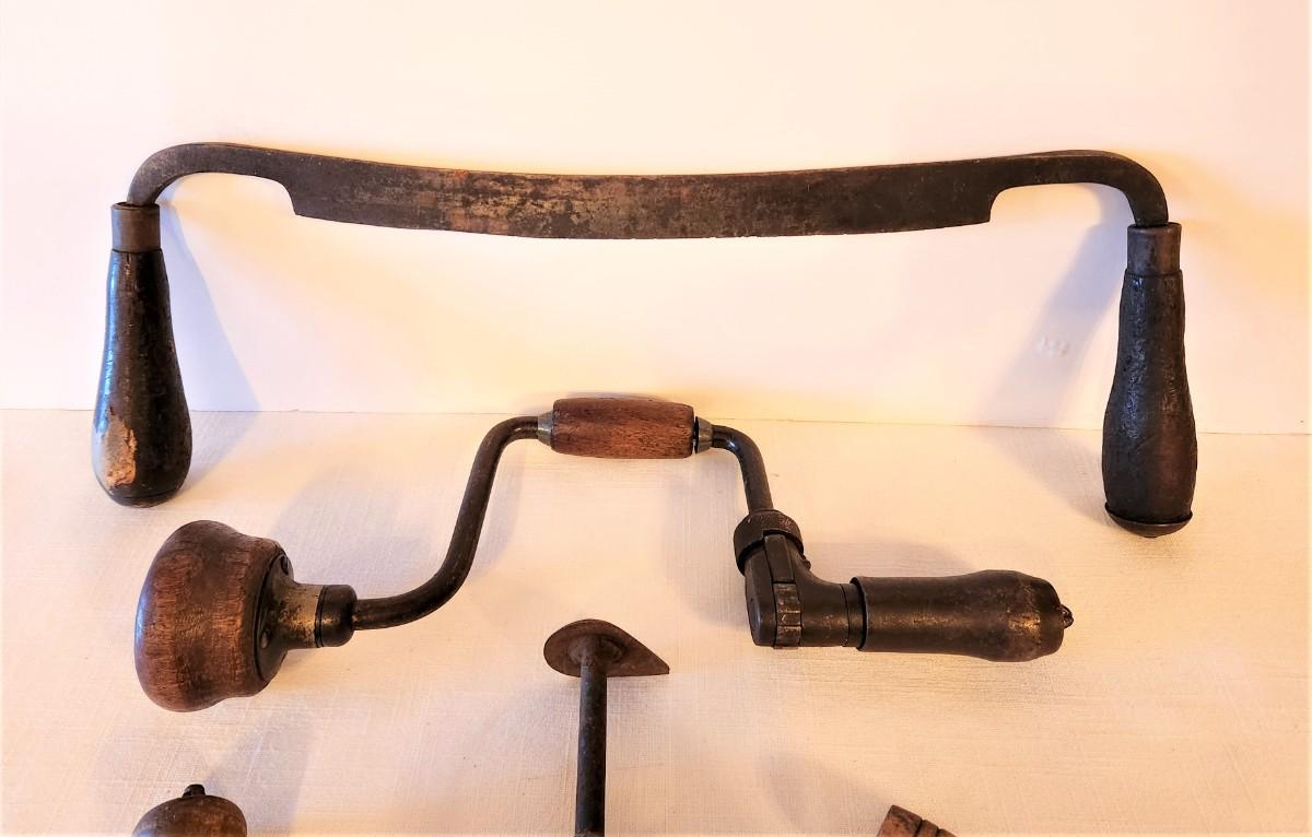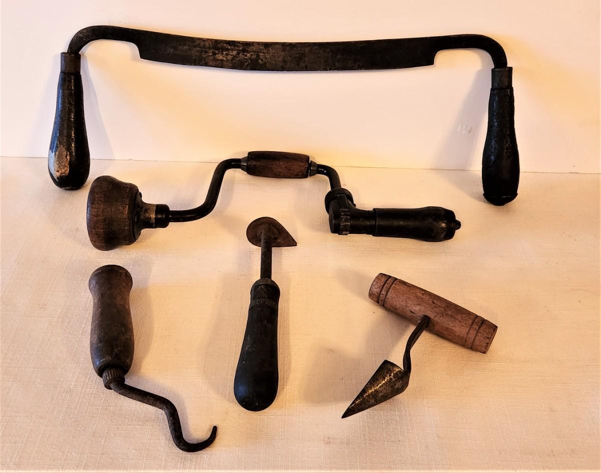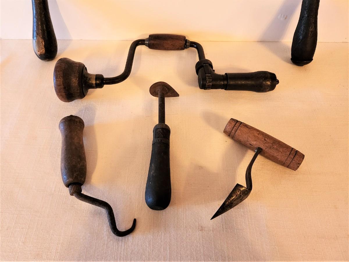 Nice lot of antique hand tools with wooden handles. You get all you see here - 5 pieces. Antique condition.