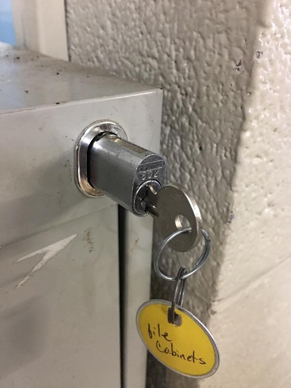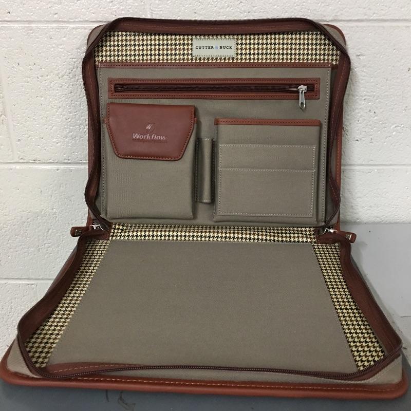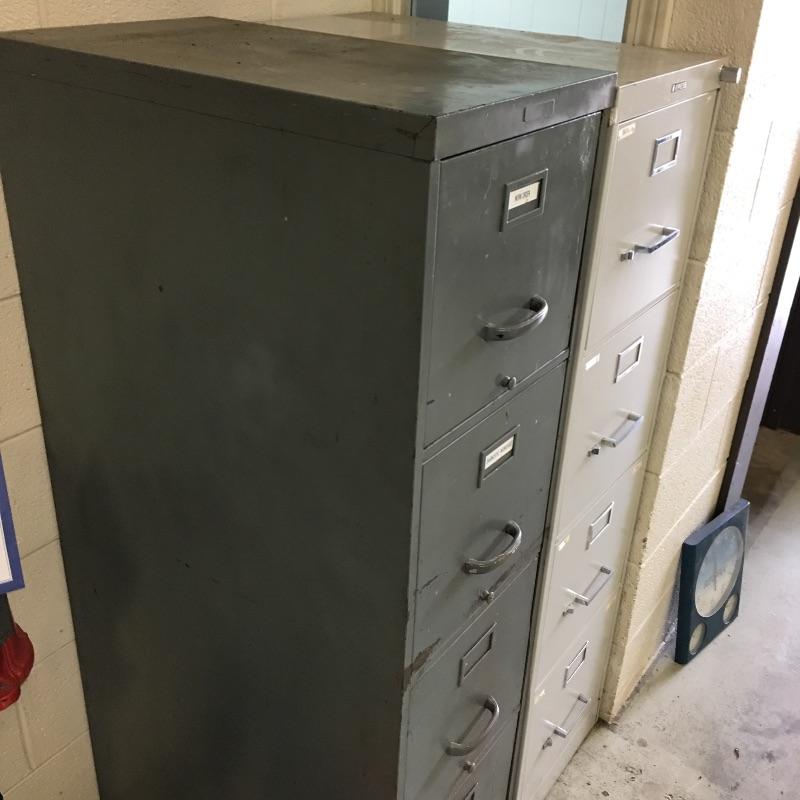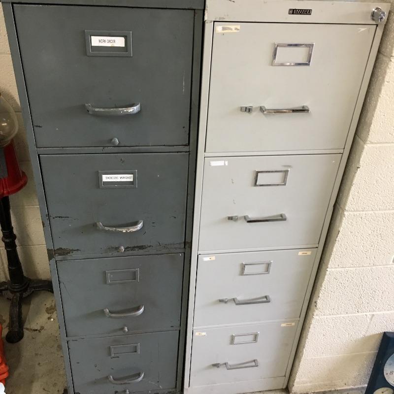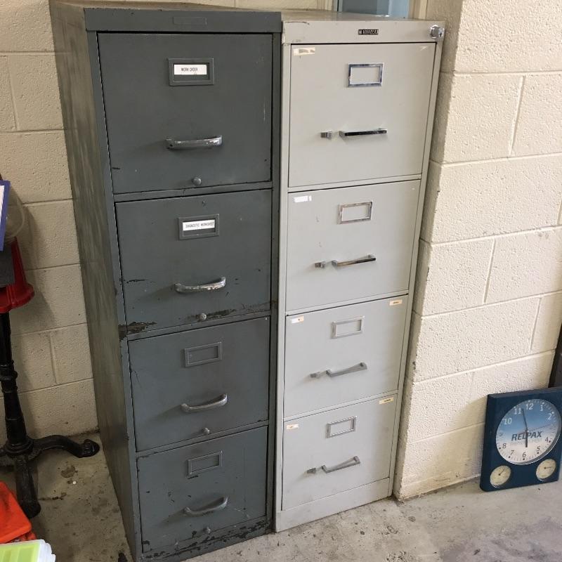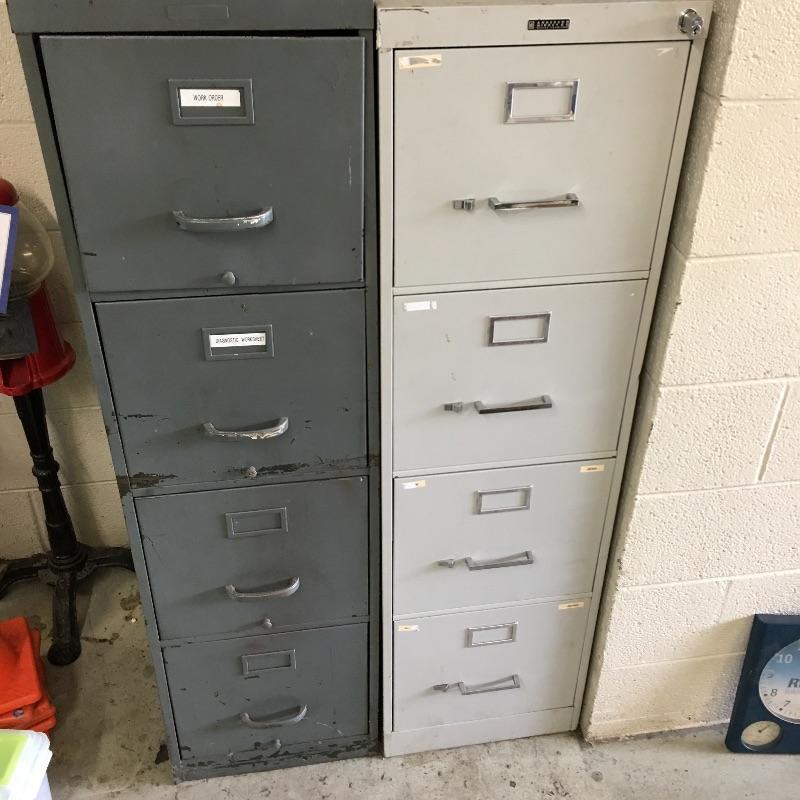 Pair of metal file cabinets and a Cutter and Buck attaché . Two four drawer file cabinets will give you plenty of room to store your files. Light Grey cabinet is locking and has key.