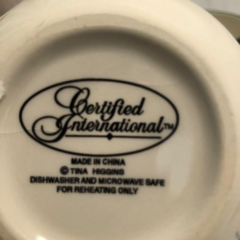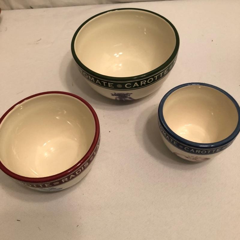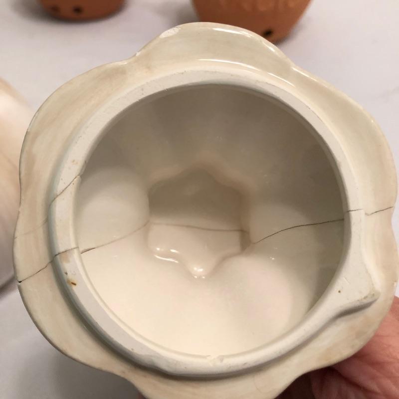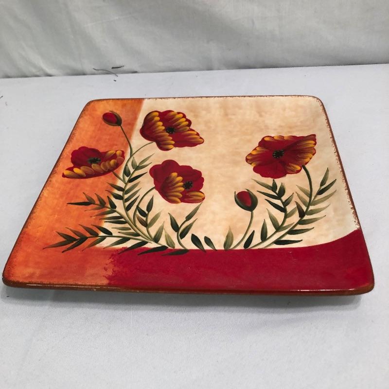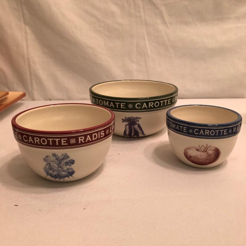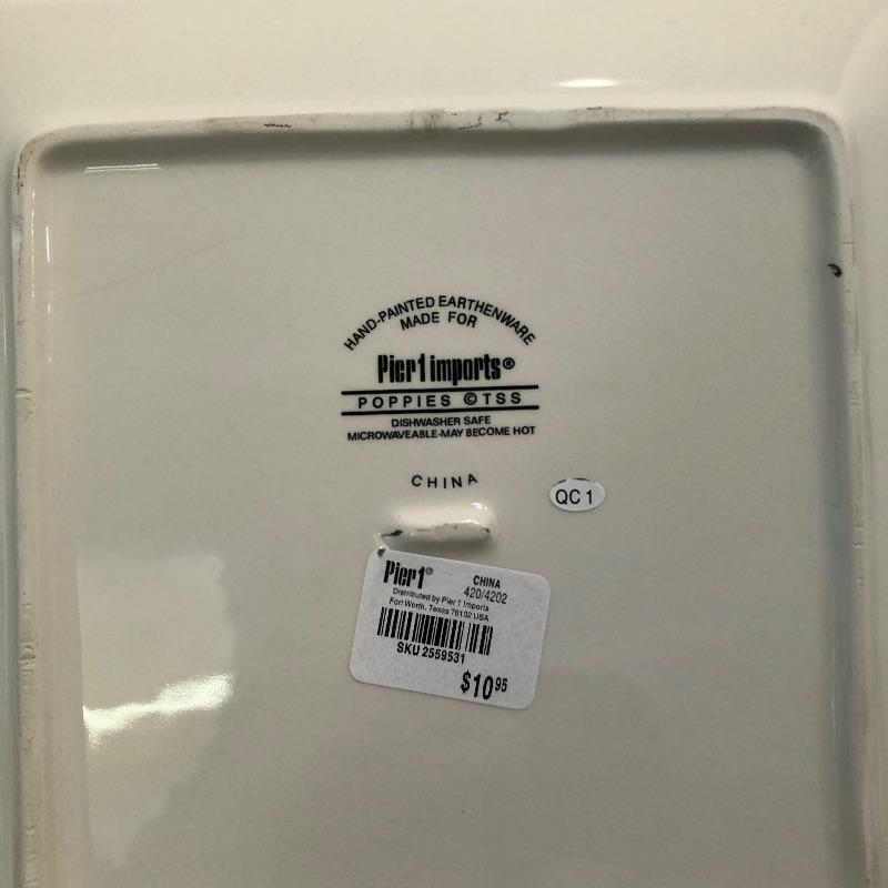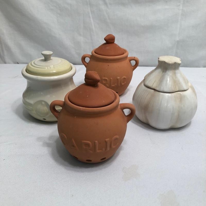 This three piece set from Pier one has beautiful hand painted poppies on earthenware. There is a large plate, smaller plate and a vase. We have added a USA made green ceramic bowl, and lots more useful kitchen items, see images. Please note that the onion keeper has a chip and a crack in the top and one of the garlic keepers appears to have had a break in the handle that has been glued nicely.