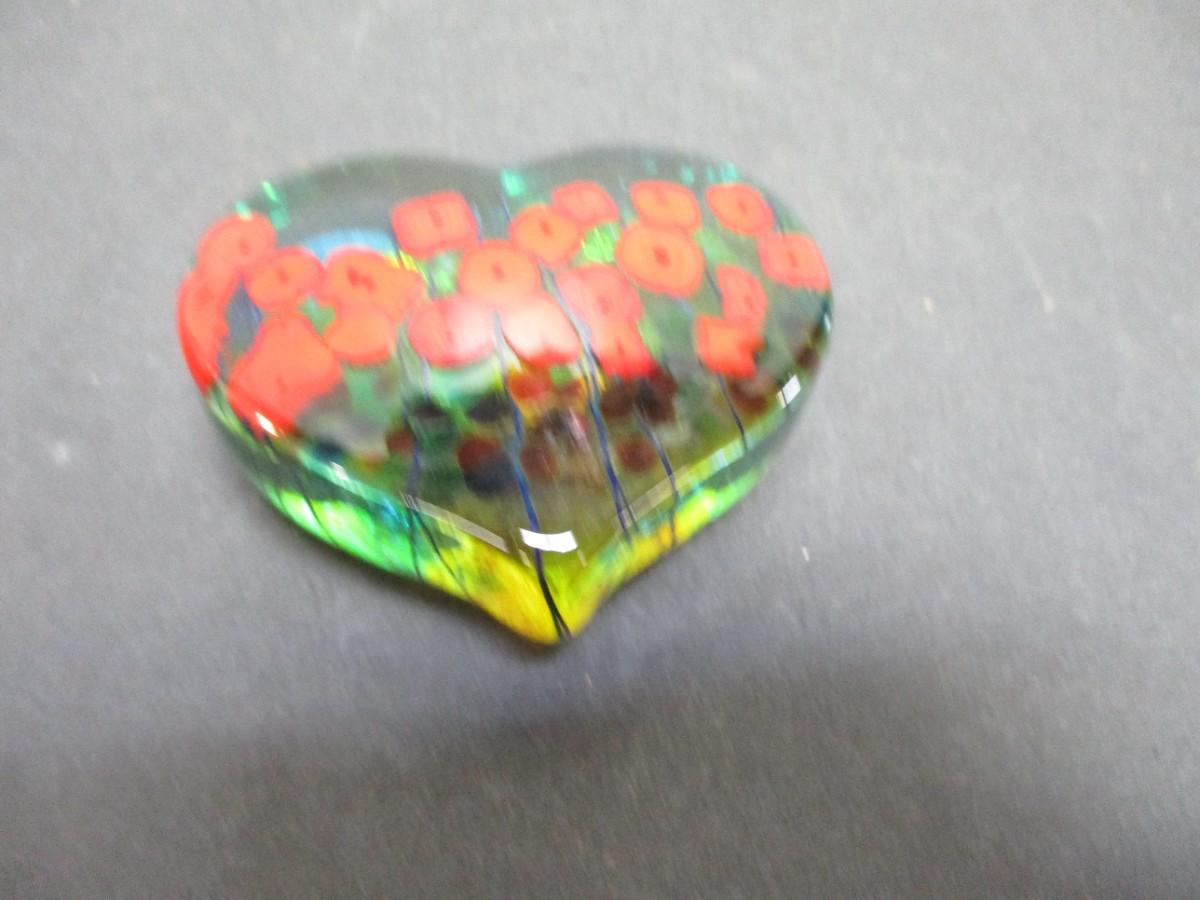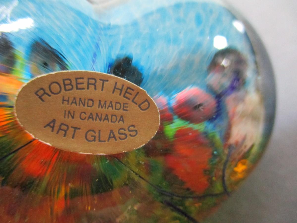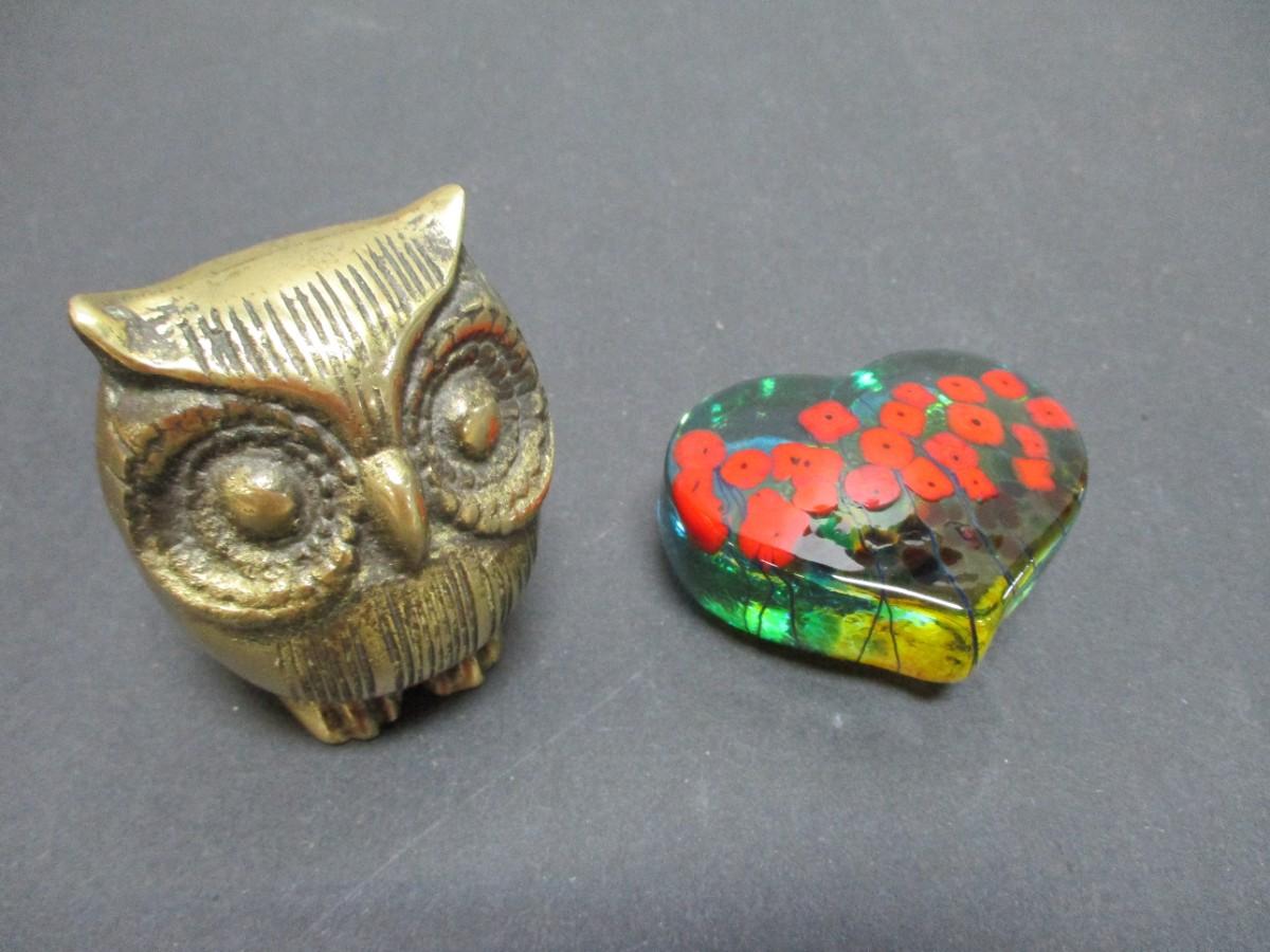 Lot 112 - Robert Held Heart Art Glass Paperweight & Brass Owl Paperweight