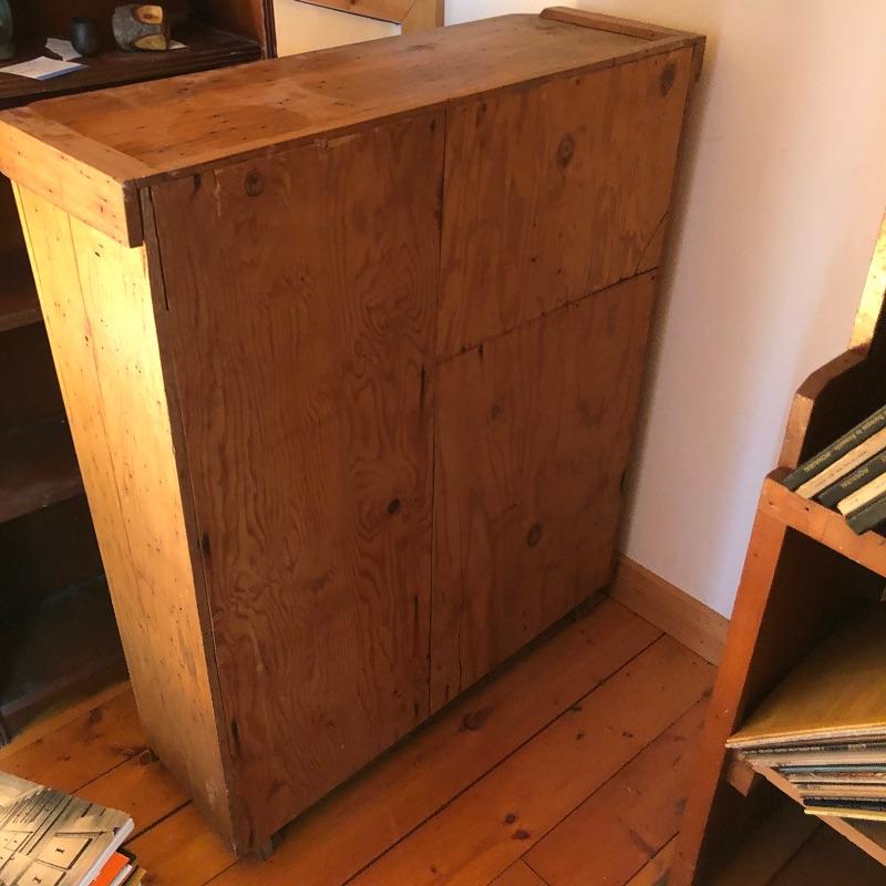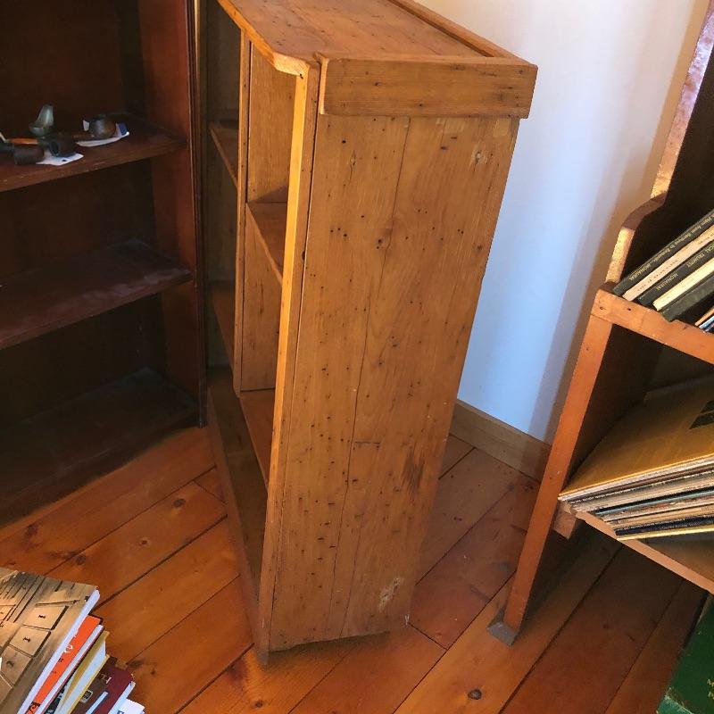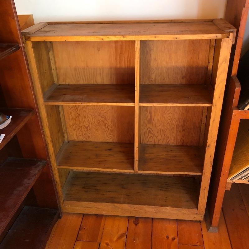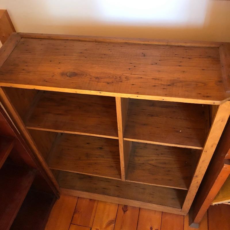 This small bookcase provides ample storage with its 3 shelves, 2 of which are split. It’s a good looking rustic set of shelves that appears to be oak with a warm brown toned stain.