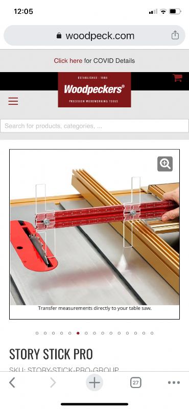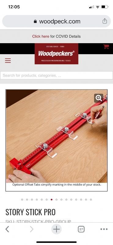Lot# 112 s Woodpeckers 24” Story Stick One Time Tools Woodworking Cabinet Making Tools