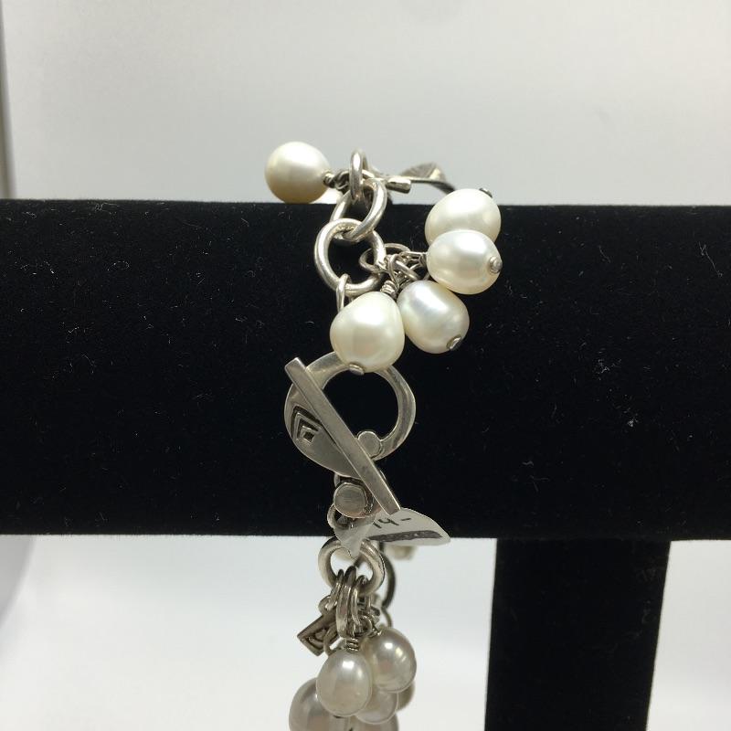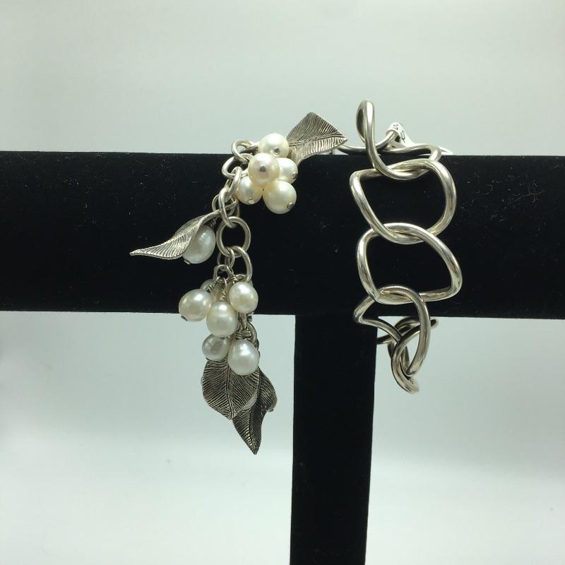 Silpada freshwater pearl and sterling silver bracelet with a toggle clasp that fits up to a 7.5” wrist and sterling silver link bracelet with a toggle clasp