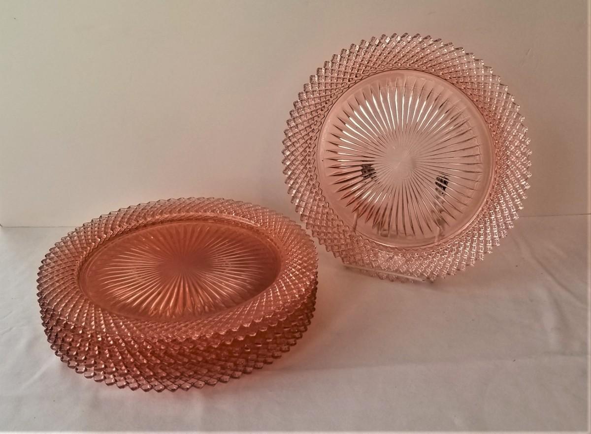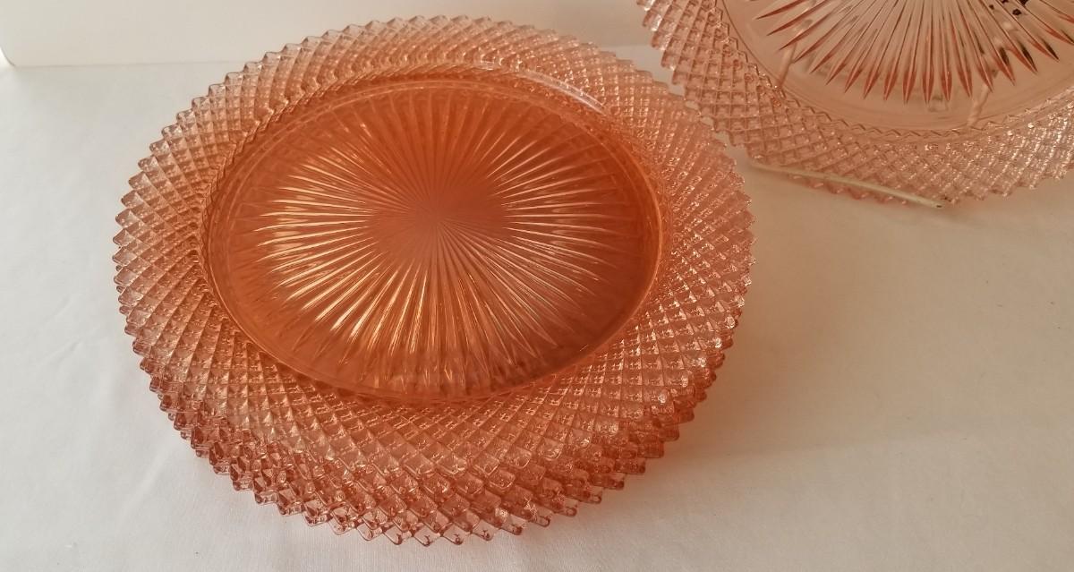 Depression Glass - Pink - in the Miss America pattern. Good condition. 10.25" across - 6 in all.