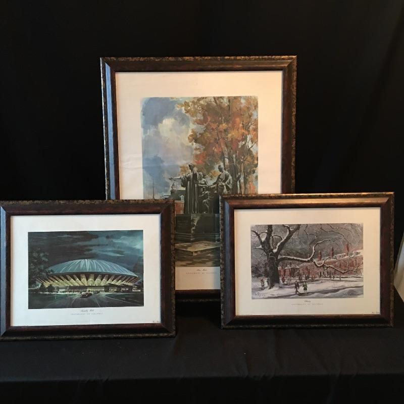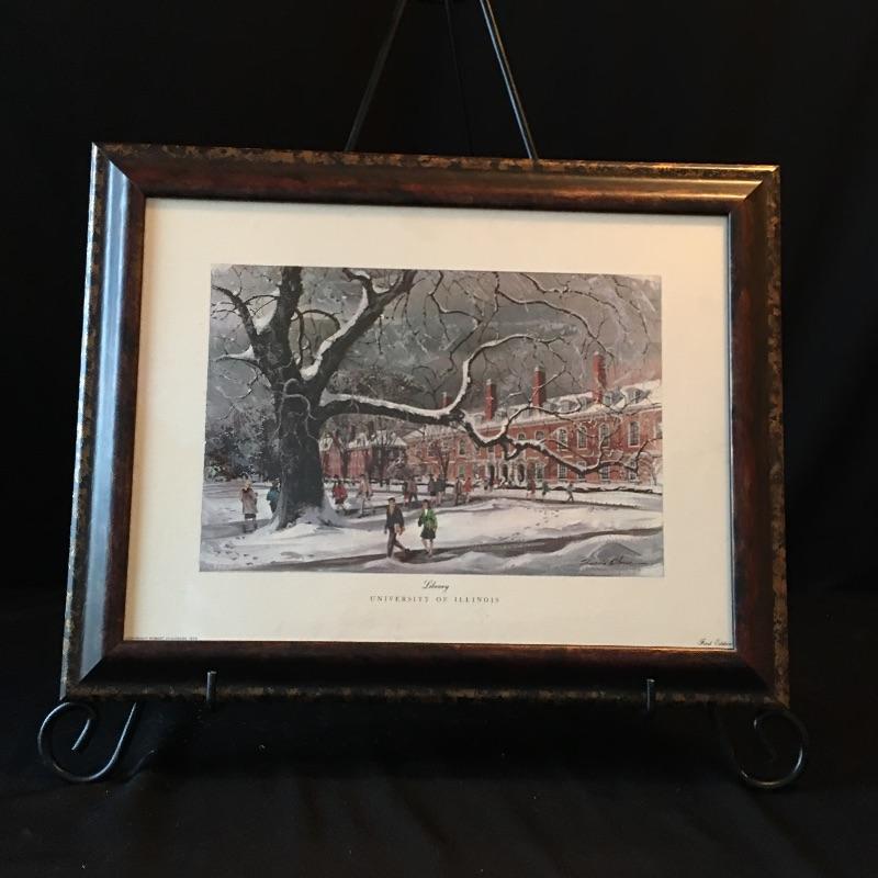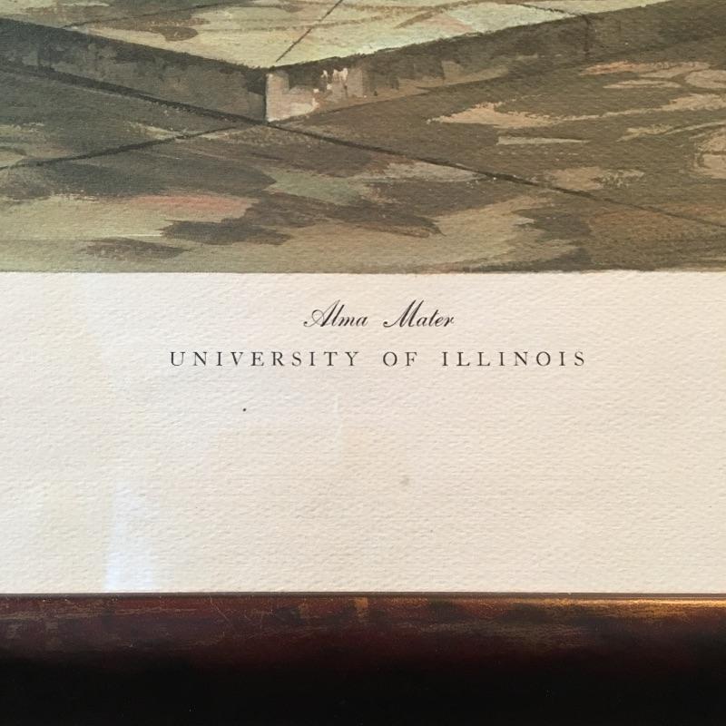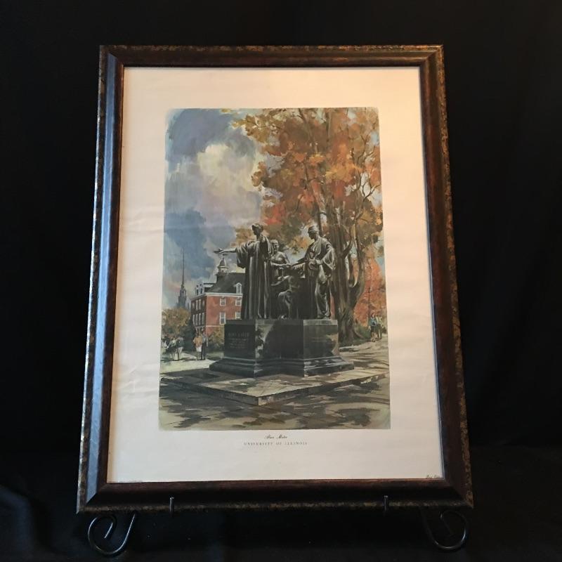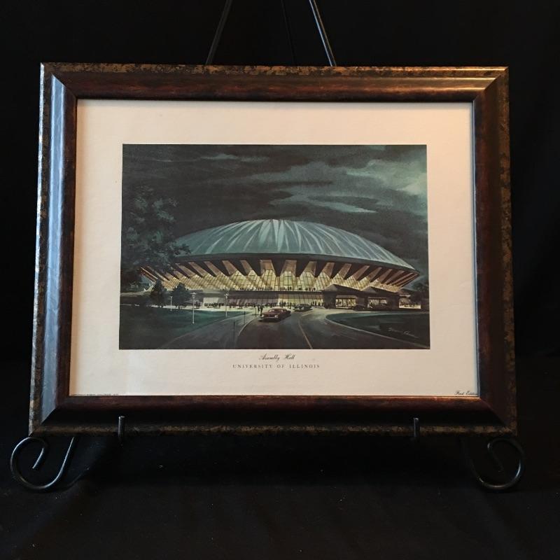 University of Illinois lot includes three First Edition prints of the University by Francis Chase. They include a print of the Library, the Assembly Hall and the Alma Mater (largest one - has some wrinkles, see pictures) There is also a signed copy of a book by the basketball coach, Lou Henson. Also a UI hat, four pins and a pendant with XTI on the front. A great lot for all you Fighting Illini fans and alumni. Largest frame measures 21” x 26.75”.