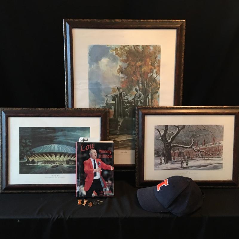Lot 112 - Unv of Illinois Artwork, Signed Book and Pins