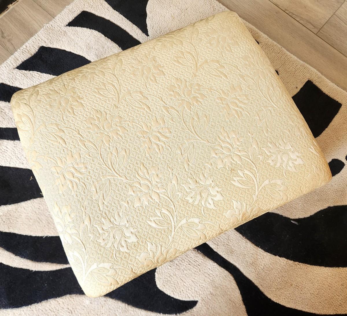 Cool 1940's upholstered foot stool - original textured fabric - 21" x 17", 10" tall. Good vintage condition.