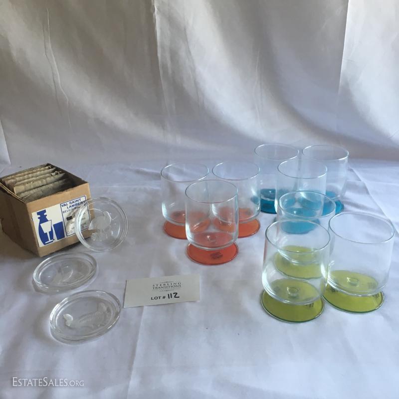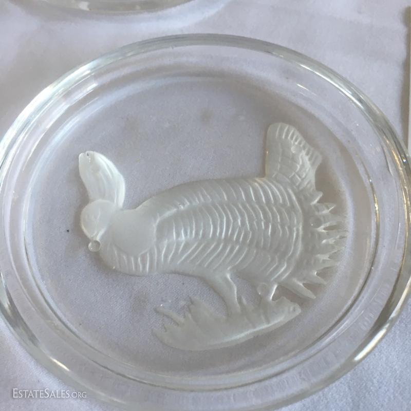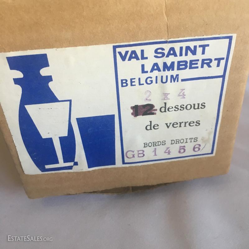 and a set of 8 coasters with etched birds by Val Saint Lambert Belgium. New in box.
