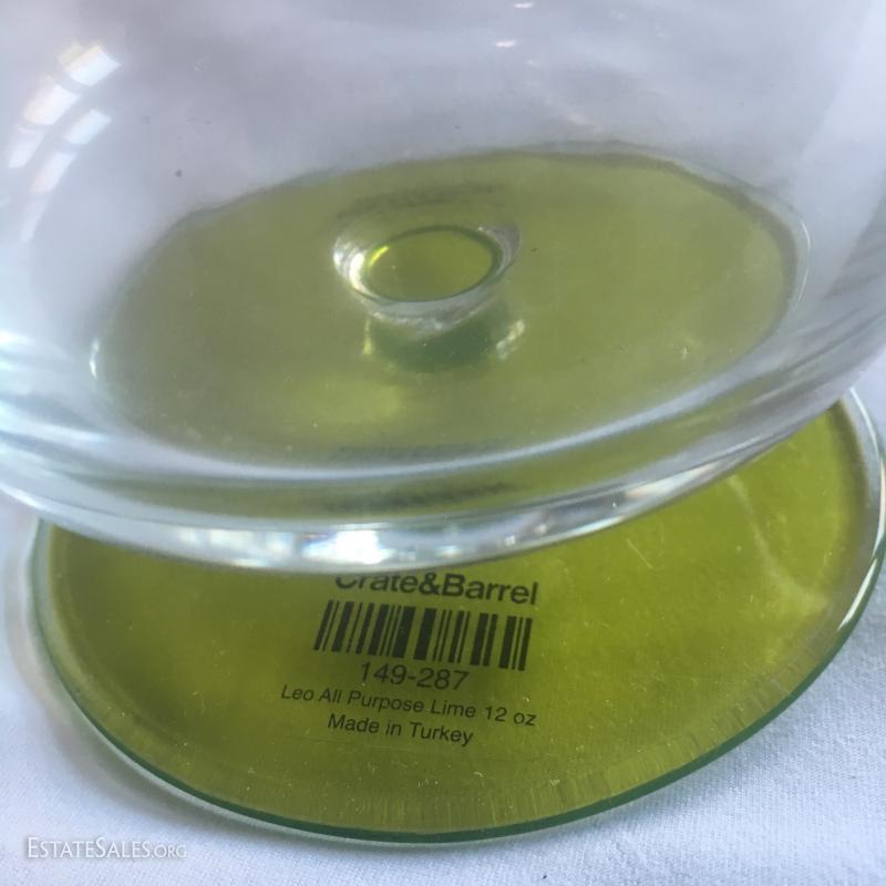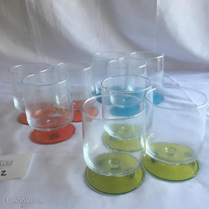 Set of 9, Crate & Barrel glasses: 3 Blue, 3 Green and 3 Orange