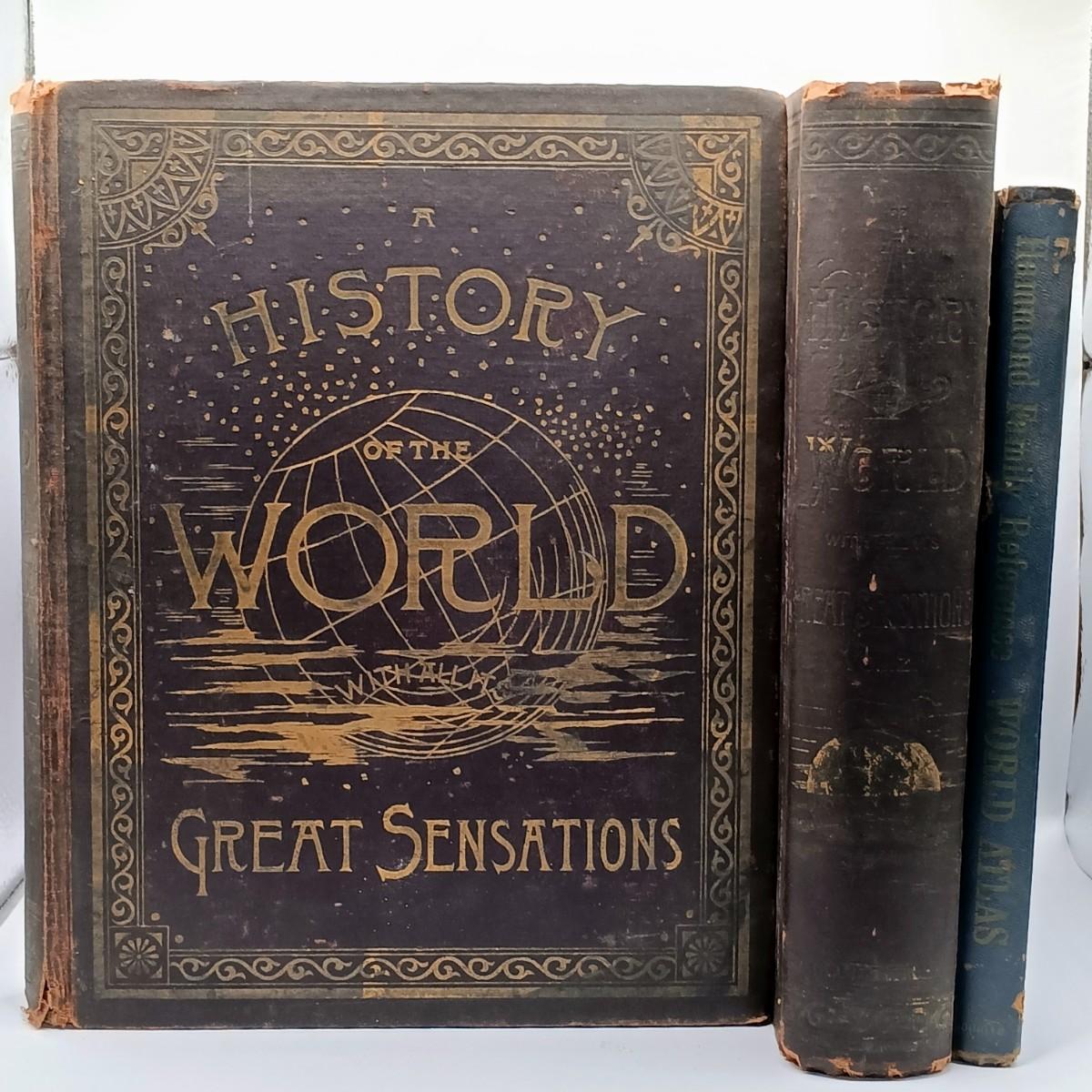 LOT 10: P.F. Collier 1887 History of the World and All Its Great Sensations 2-Volume Set w/ Hammond's 1966 World Atlas