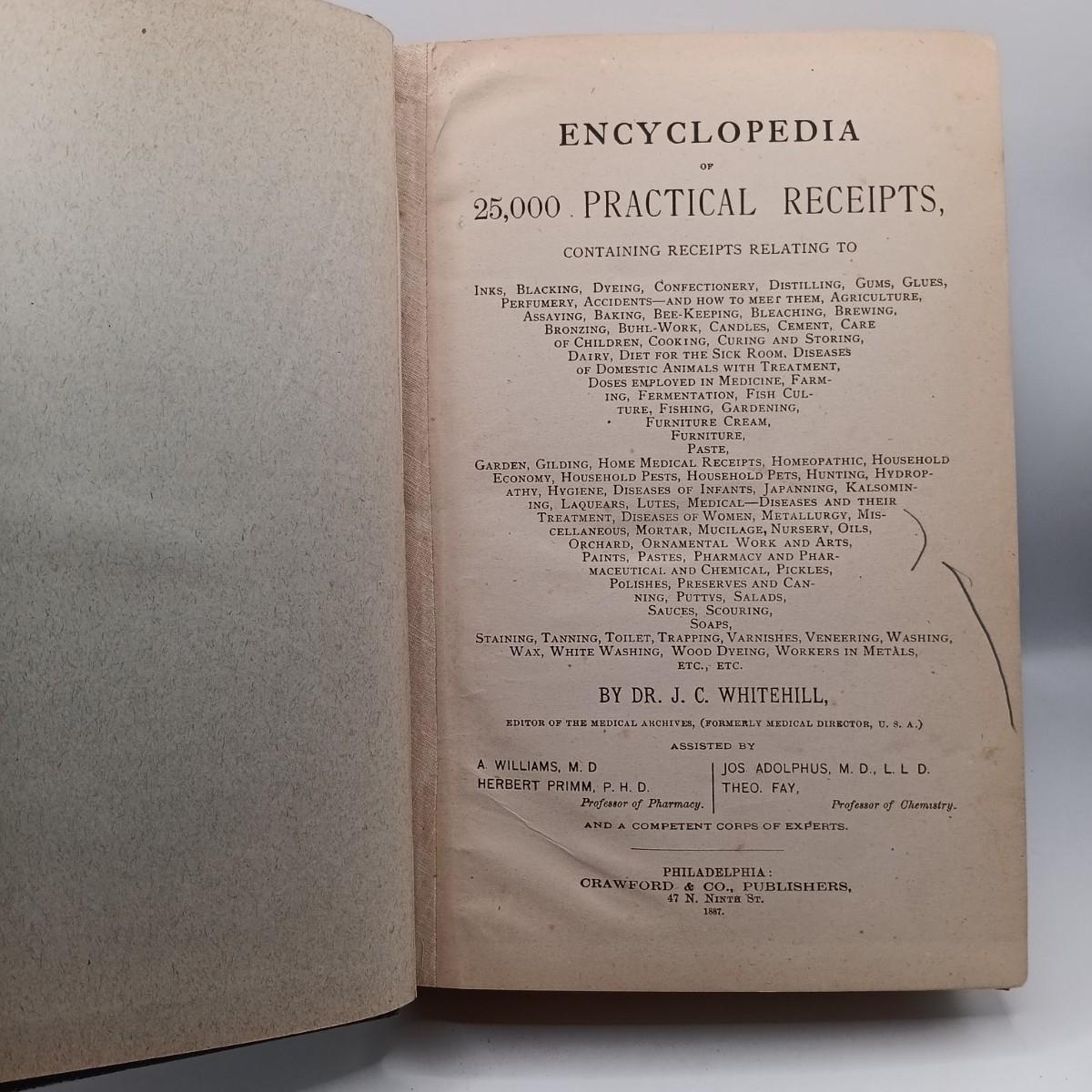LOT 11: Dr. J.C. Whitehill's 1887 Encyclopedia of 25,000 Practical Receipts w/ De Kruff's 1937 Microbe Hunters & 1938 The Fight for Life