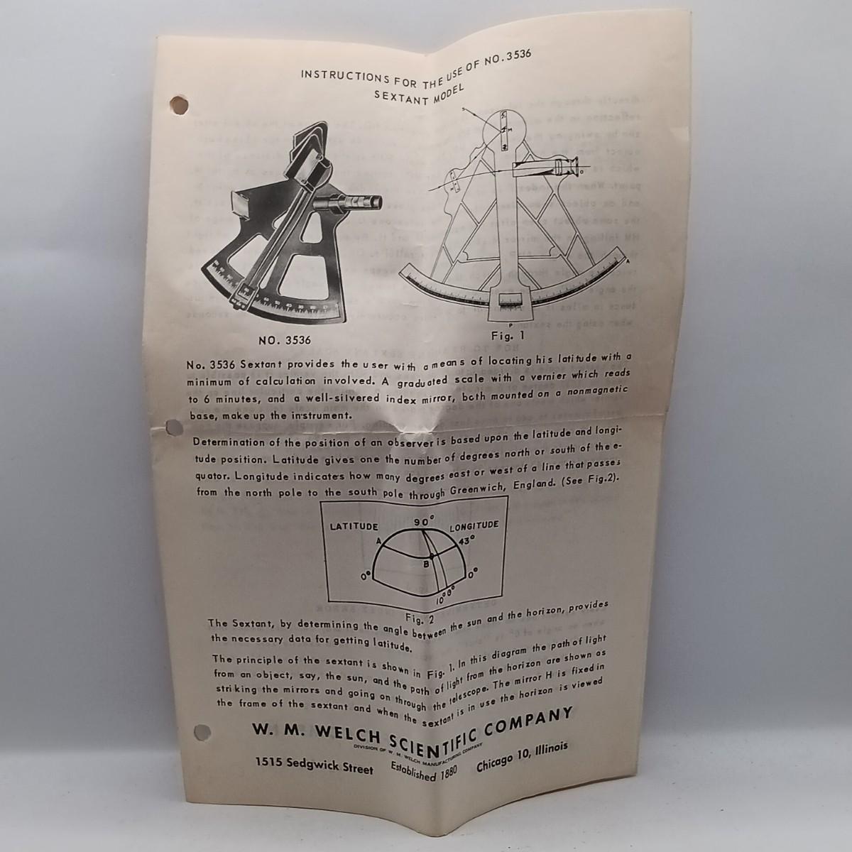 LOT 16: W.M. Welch Scientific Co. Sextant Model 3536, Bowditch's 1934 American Practical Navigator & More