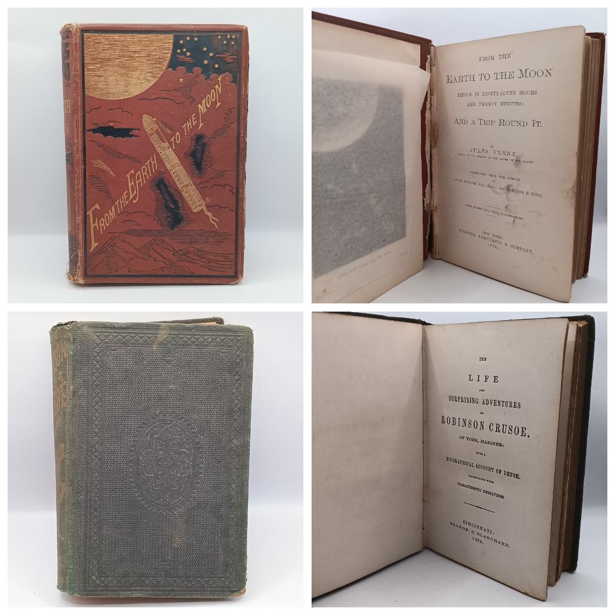 LOT 25: Jules Verne's 1874 From the Earth to the Moon with 1864 Life and Surprising Adventures of Robinson Crusoe