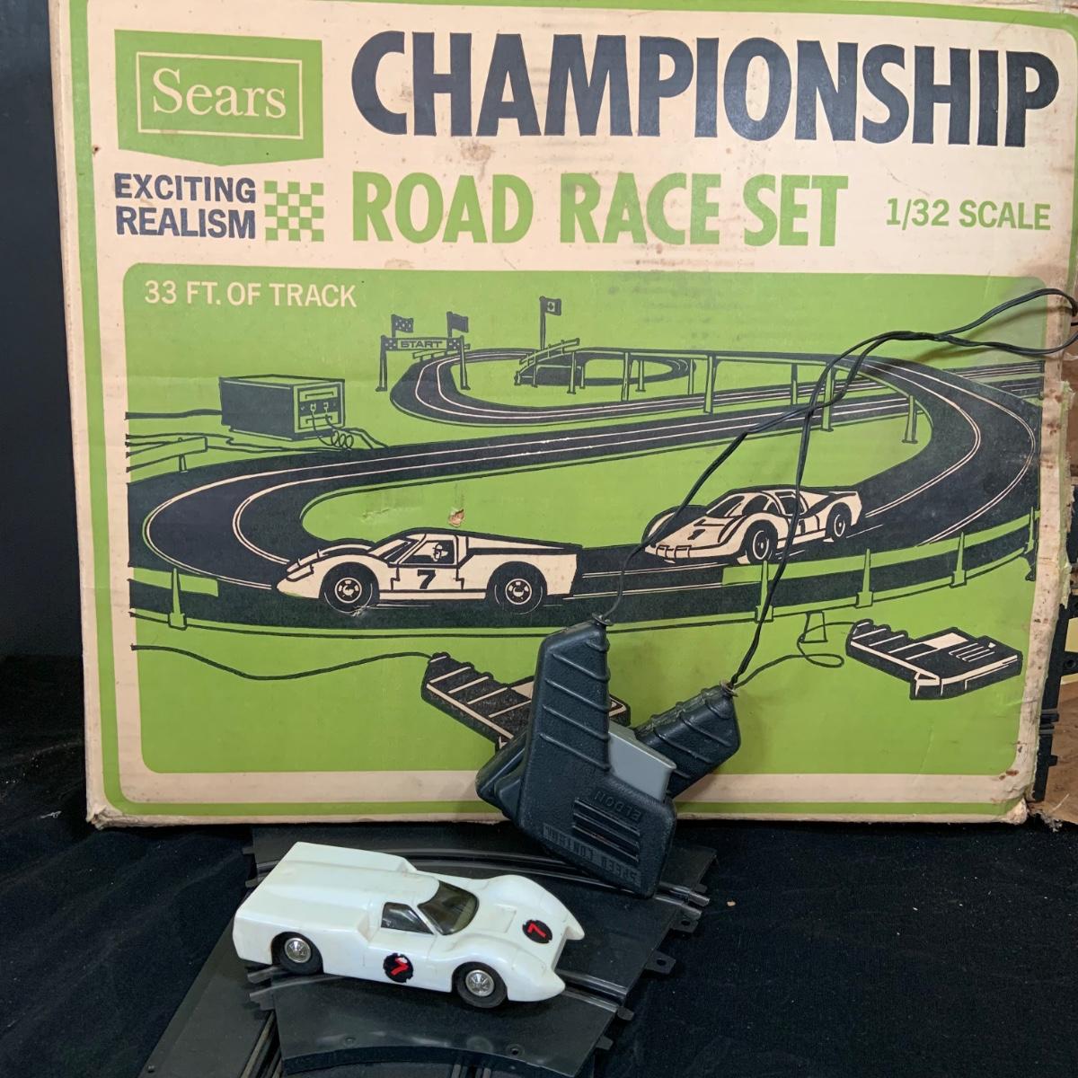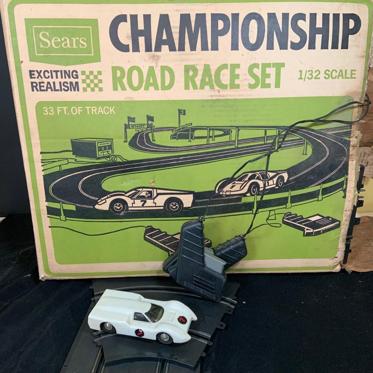 LOT 30: Vintage Sears Championship Road Race Set with Track, Cars and Controllers