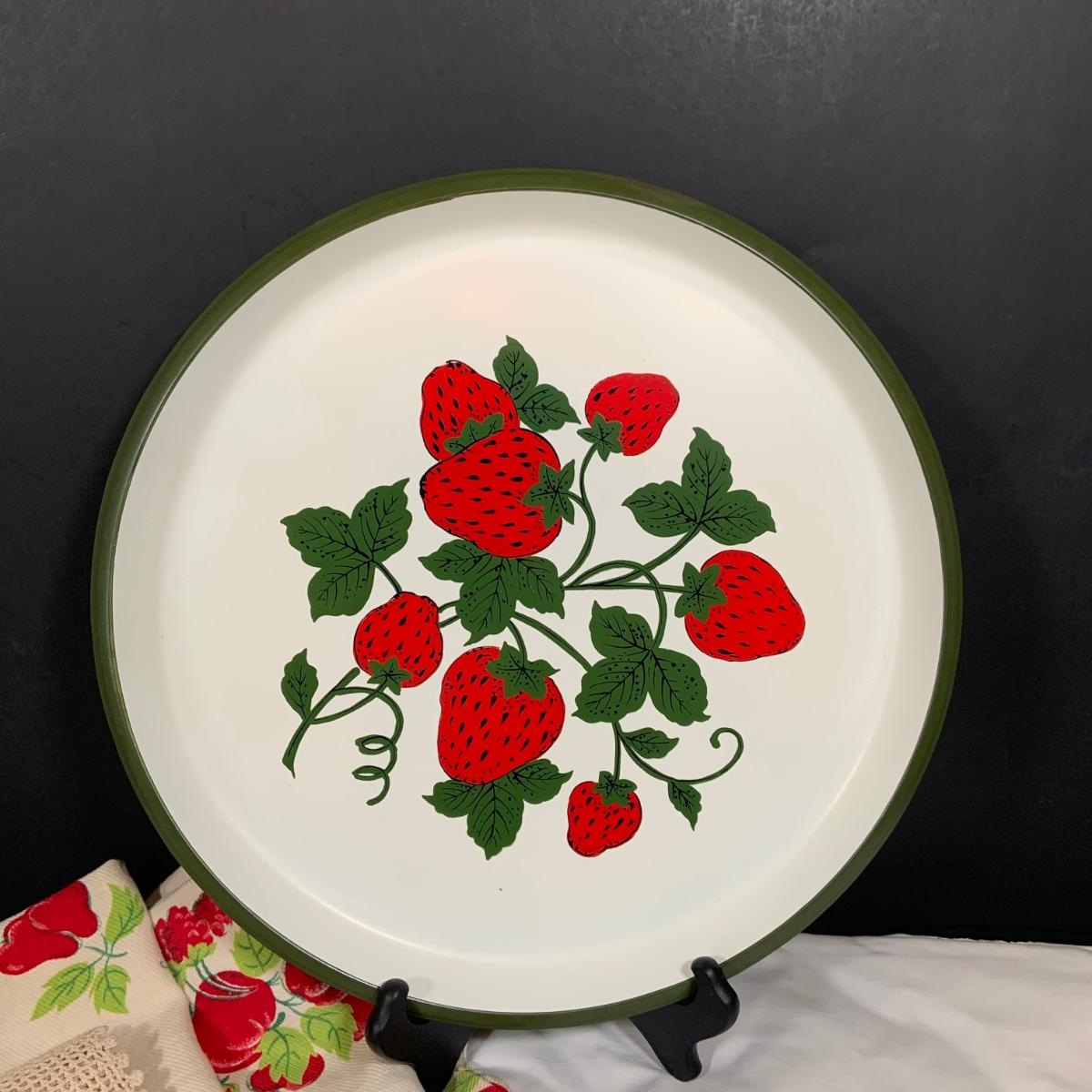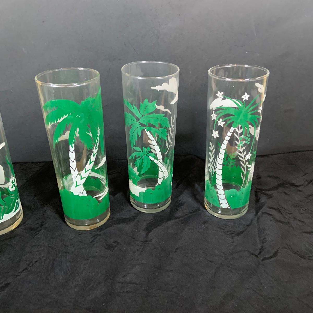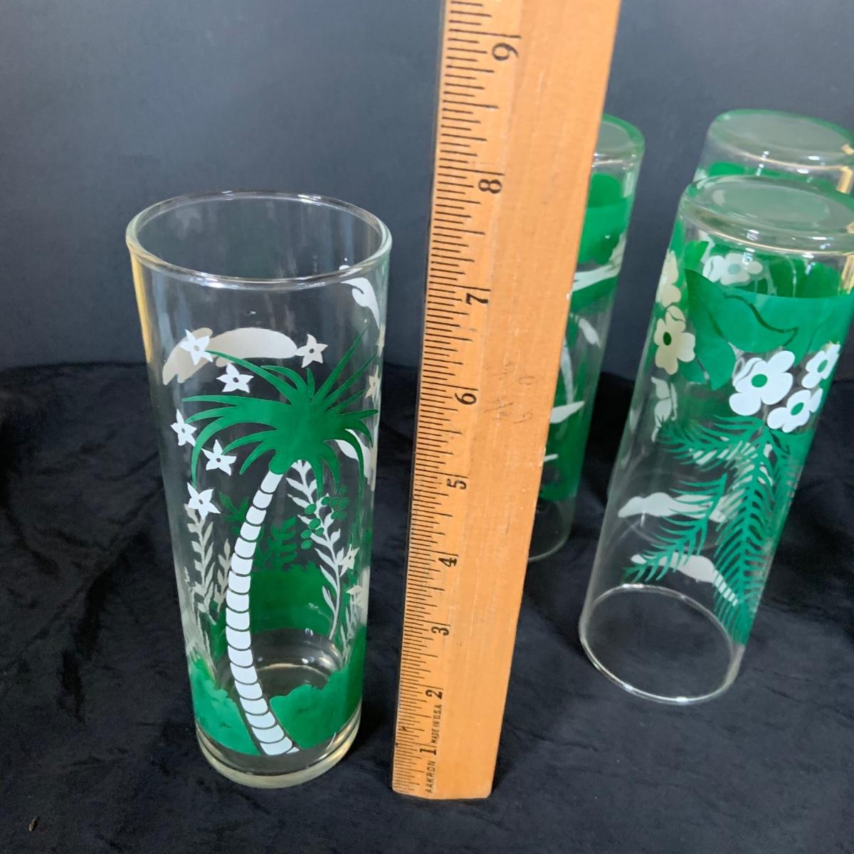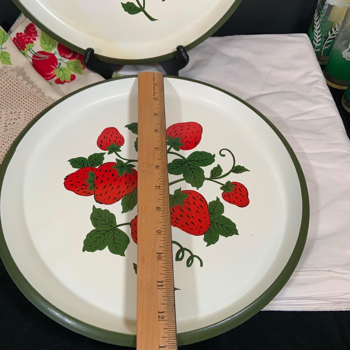 LOT 32: Vintage Kitchen Including Libby Tropical Tall Tom Collins Glasses, Strawberry Trays, Lemon Mugs, Wilpet Plastic Salt and Pepper Shakers, Irish Themed Tea Towels, Other Linens and More