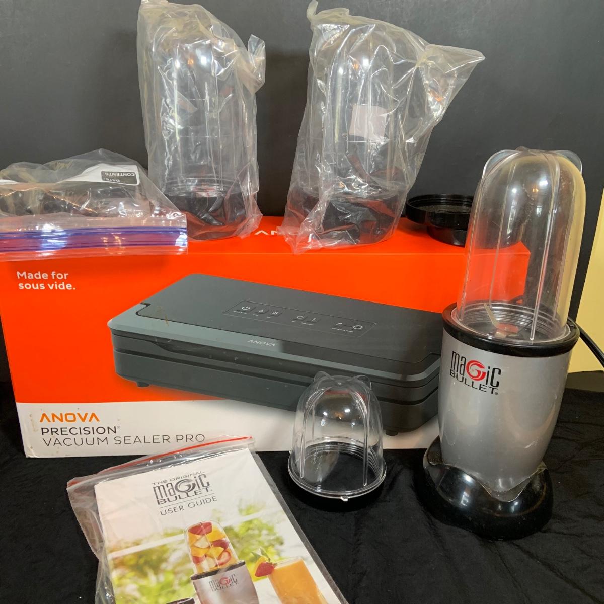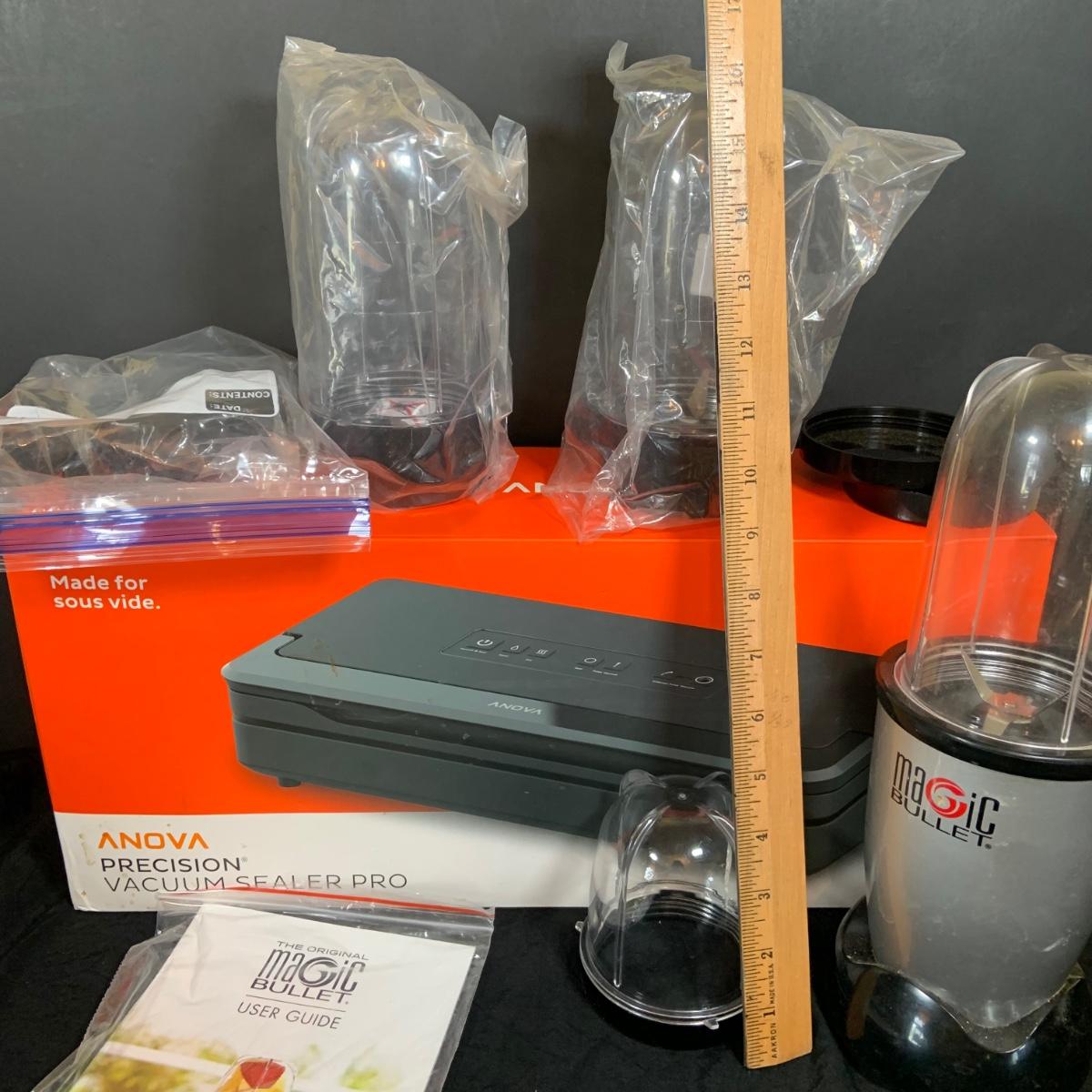 LOT 33: Magic Bullet with Extra Tops and a Anova Vacuum Sealer Pro In Original Box