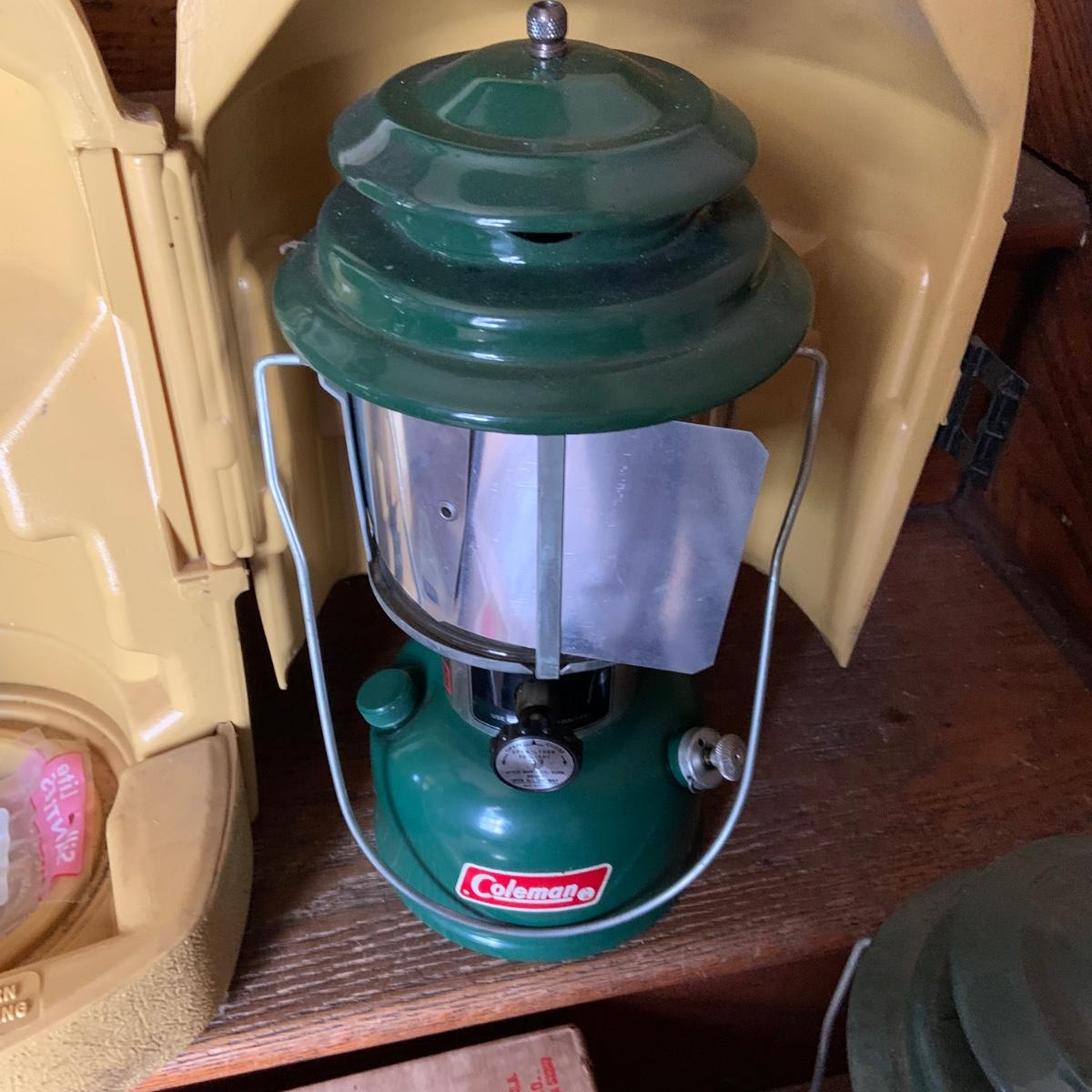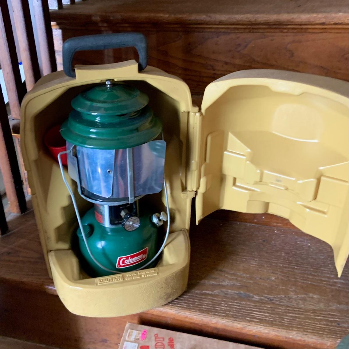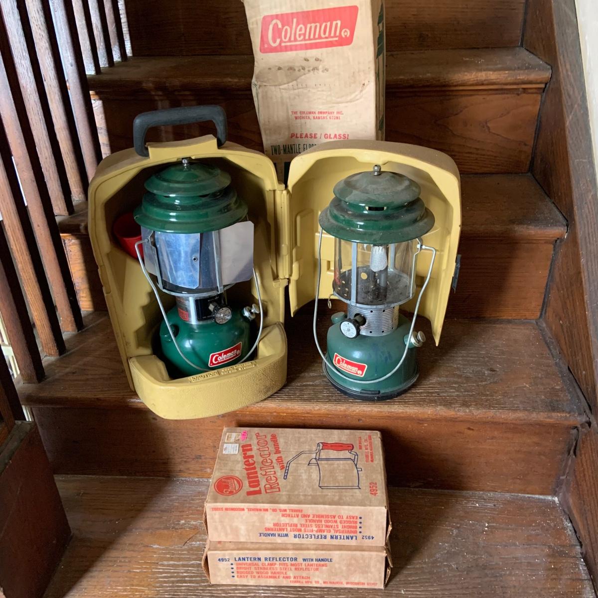 LOT 37: Set of 2 Colman Lanterns One with the Original Box and the Other in a Hard Plastic Caring Case and Frabill’s Lantern Shields In Original Box and More